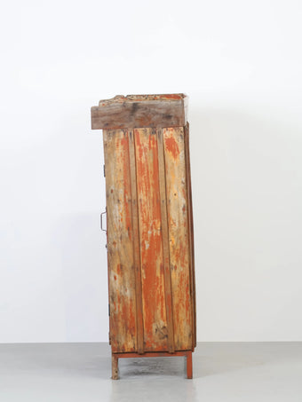 - 品名:ヴィンテージ オレンジペイント ウッド ディスプレイ キャビネット
