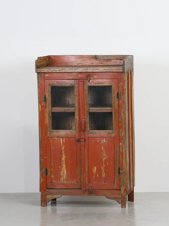 1950 - 60年代 ヴィンテージ レッドペイント ウッド ディスプレイ キャビネット