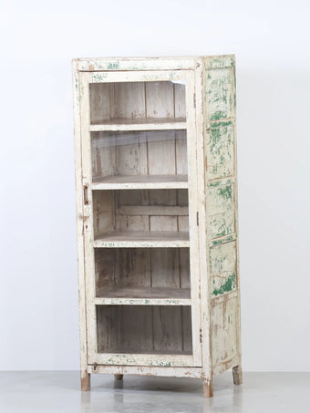 - 品名:ヴィンテージ ホワイト & グリーンペイント 5段 ディスプレイ キャビネット