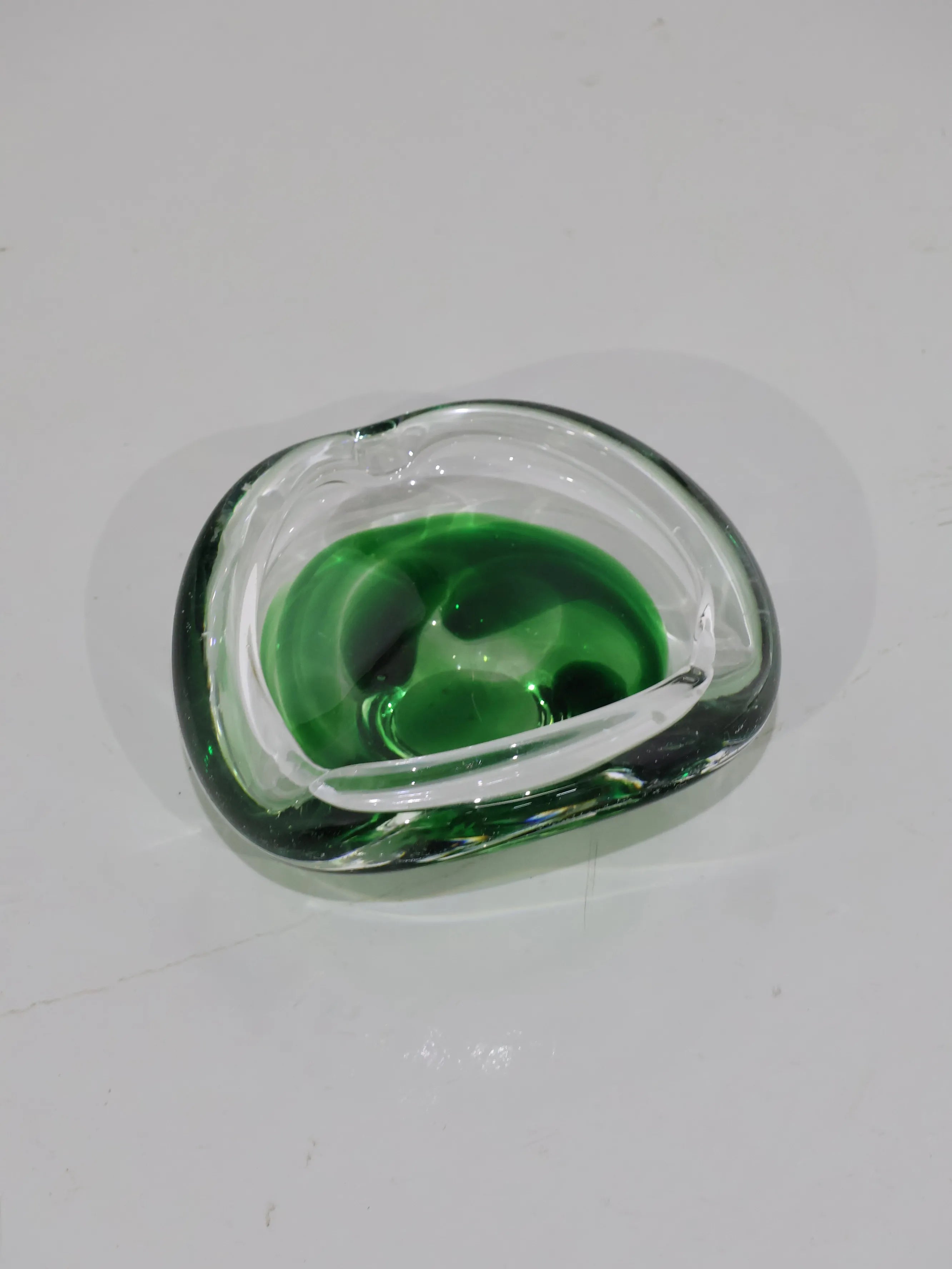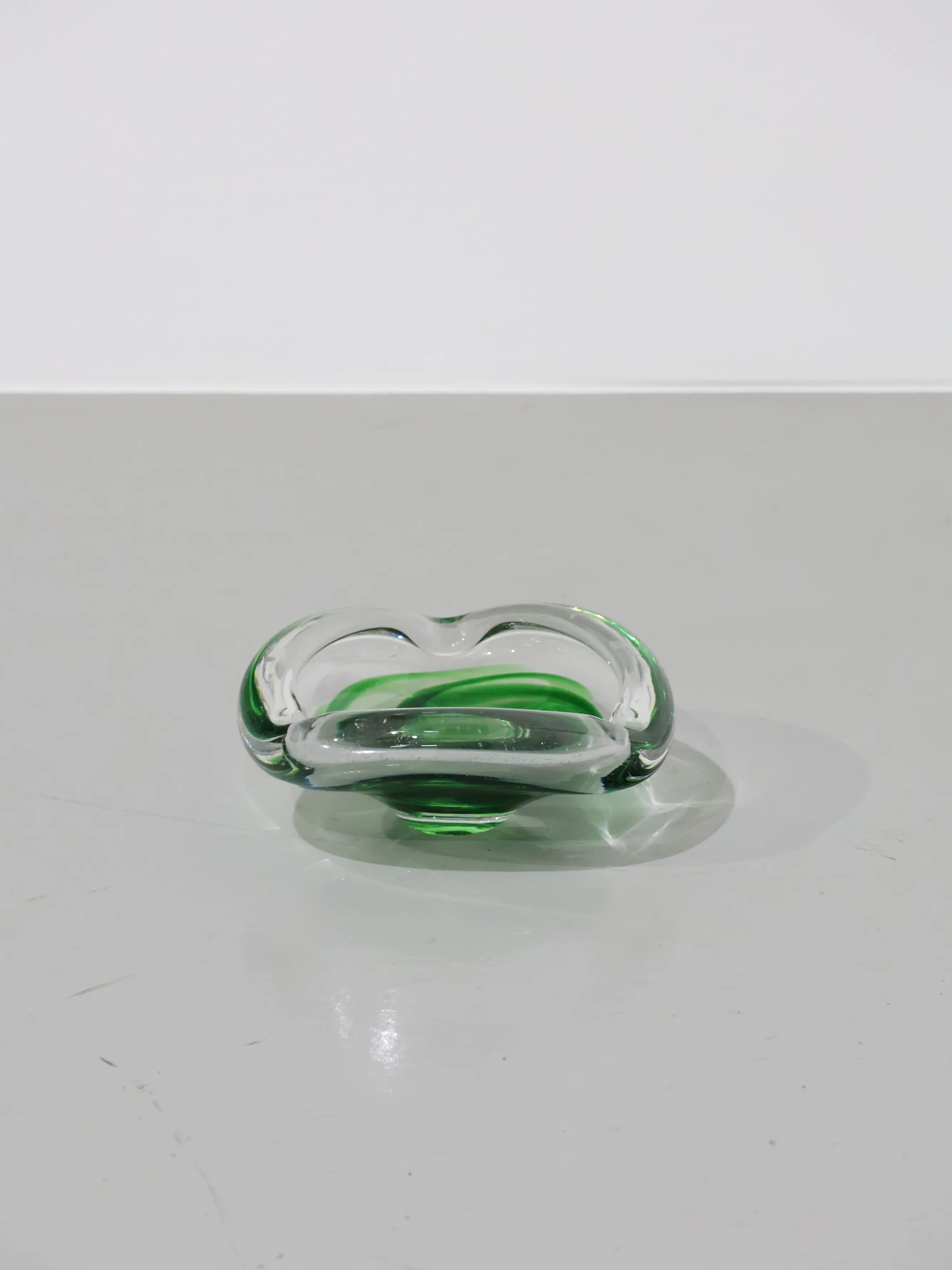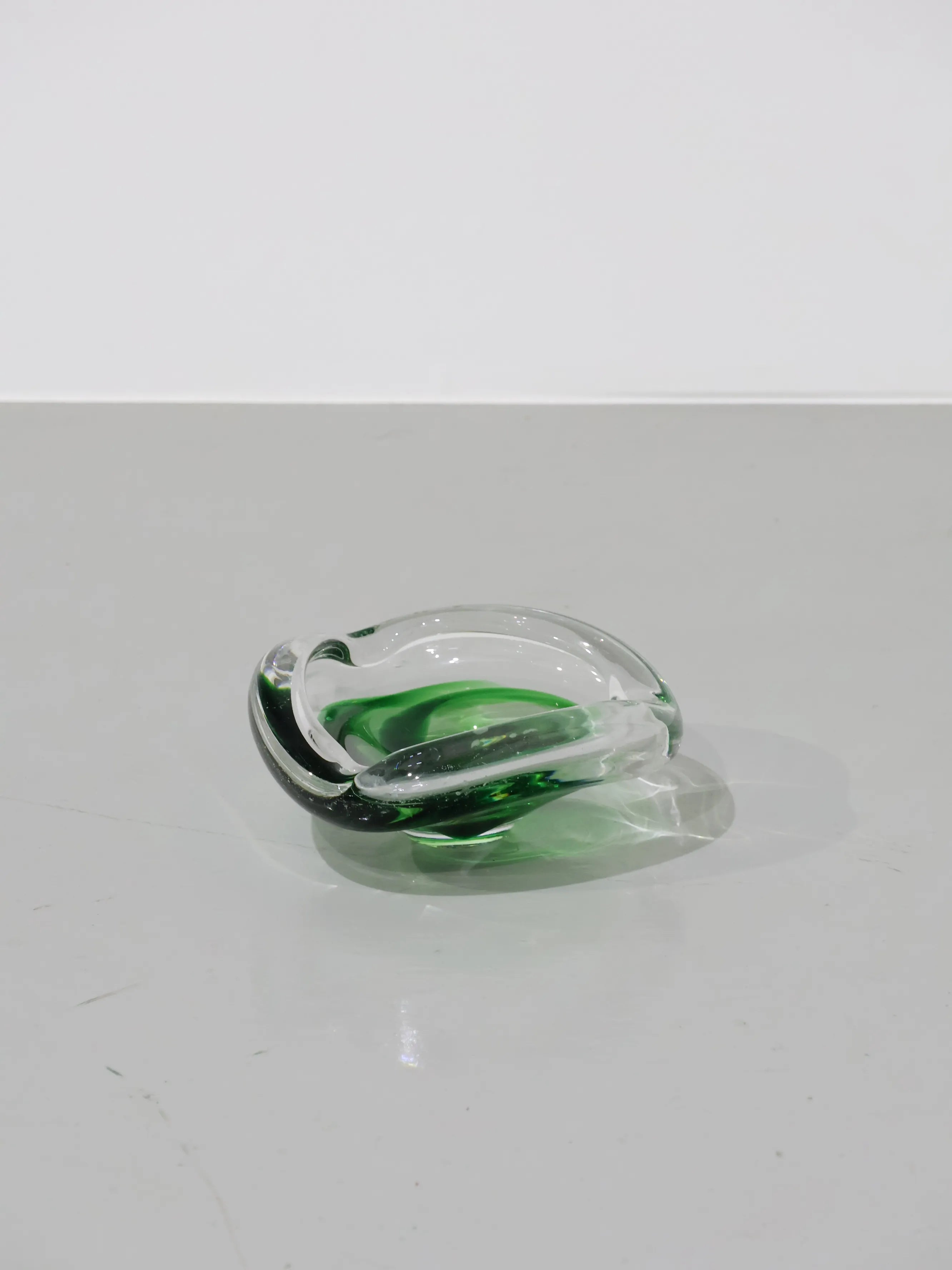 1960 - 70年代 ヴィンテージ グリーングラデーションデザイン クリアガラス アッシュトレイ 灰皿