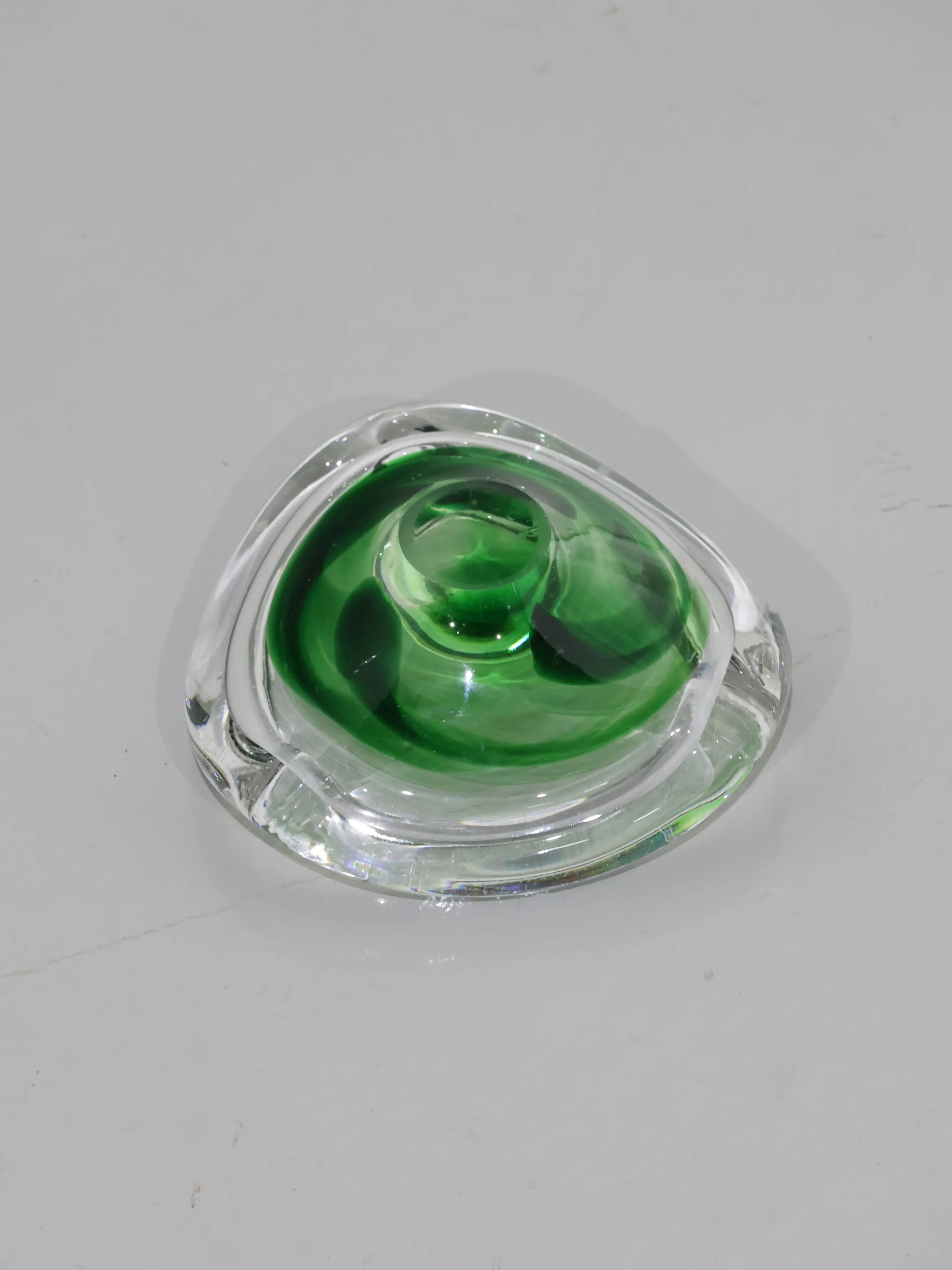 ヨーロッパより買い付けました1960年代-1970年代グリーングラデーションデザインクリアガラスアッシュトレイです。