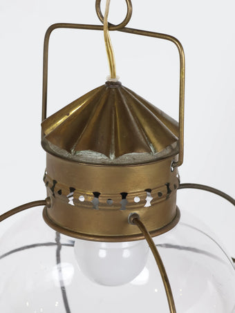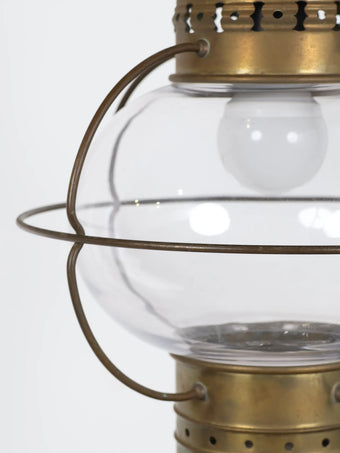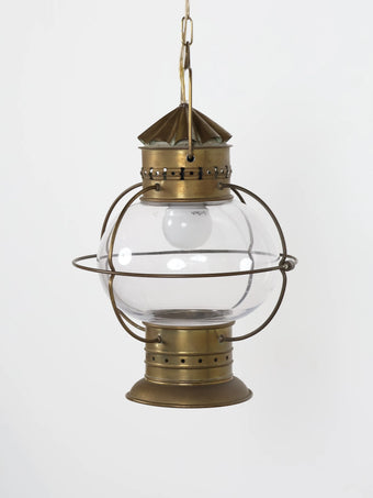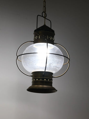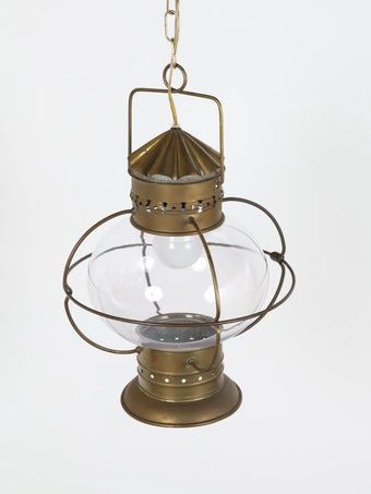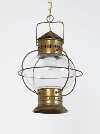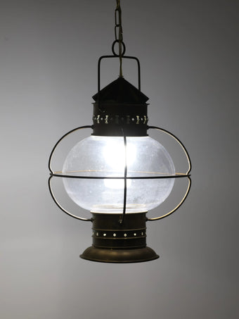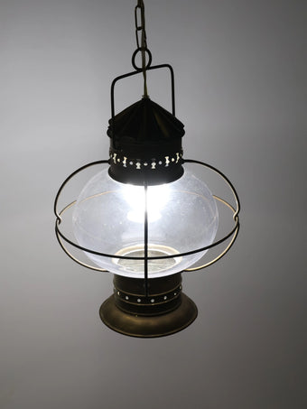 ヨーロッパより買い付けましたヴィンテージマリンオイルランプモチーフメタルベースクリアガラスペンダントランプです。