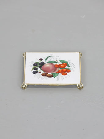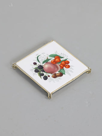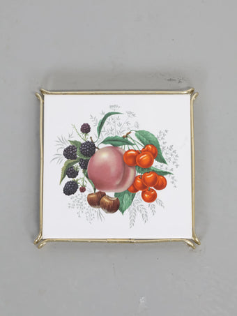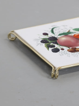 ヴィンテージ メタルフレーム フルーツプリント ホワイトセラミック ポットトレイ