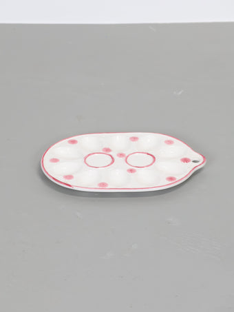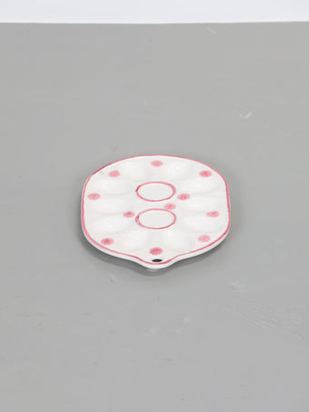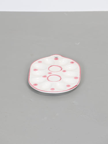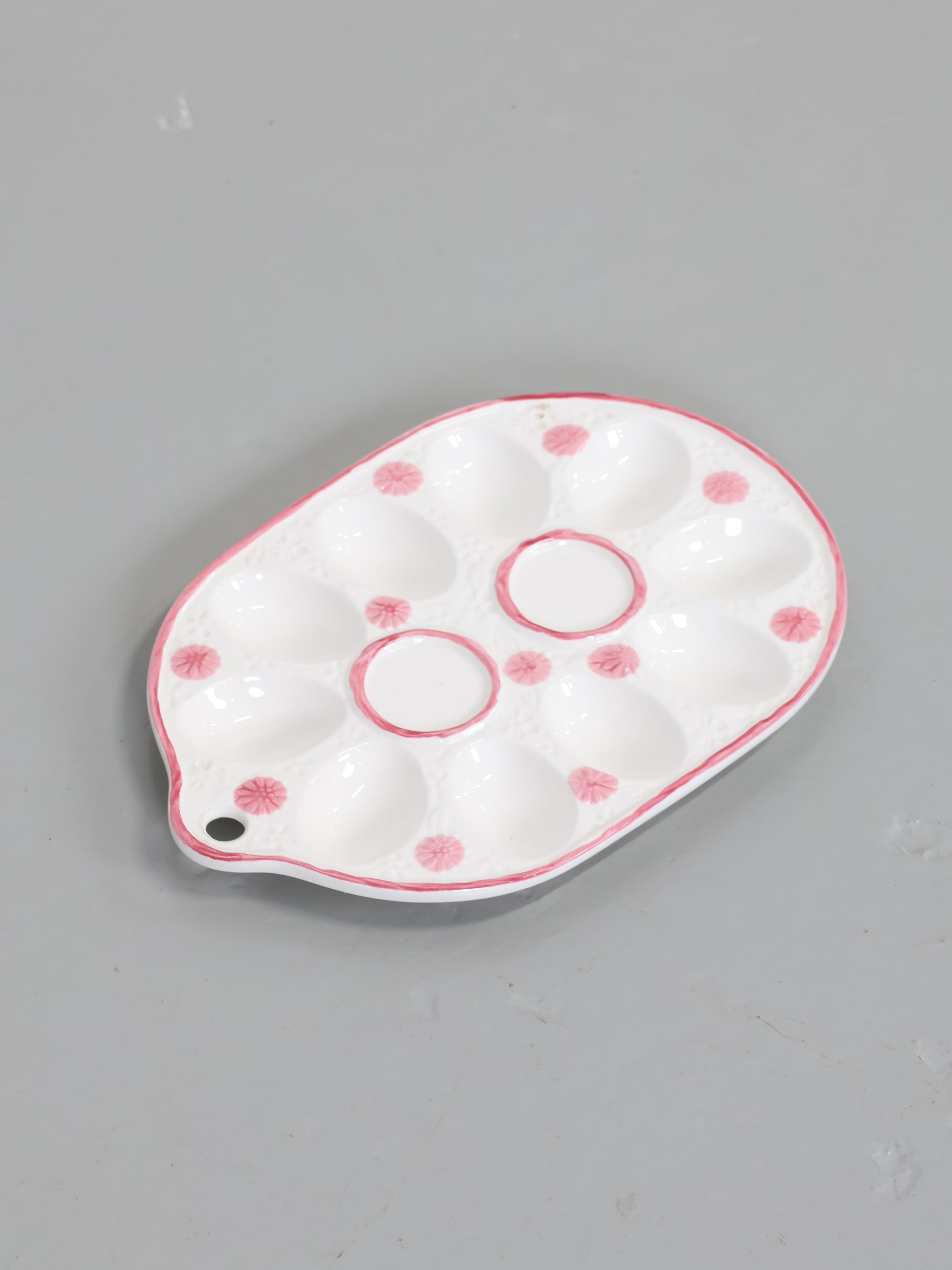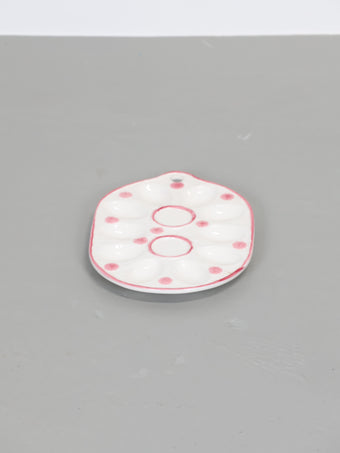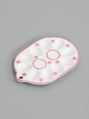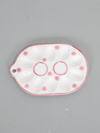 ヨーロッパより買い付けました1950年代-1960年代のピンクフラワープリントホワイトセラミックエッグプレートです。