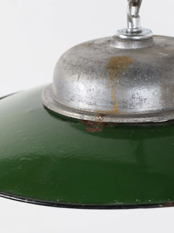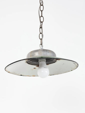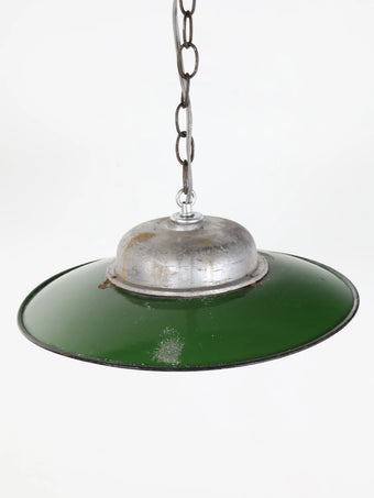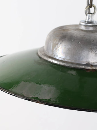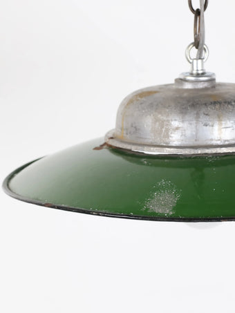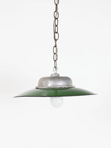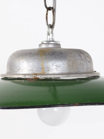 ヨーロッパより買い付けました1960年代のインダストリアルグリーンポーセリンペンダントランプです。