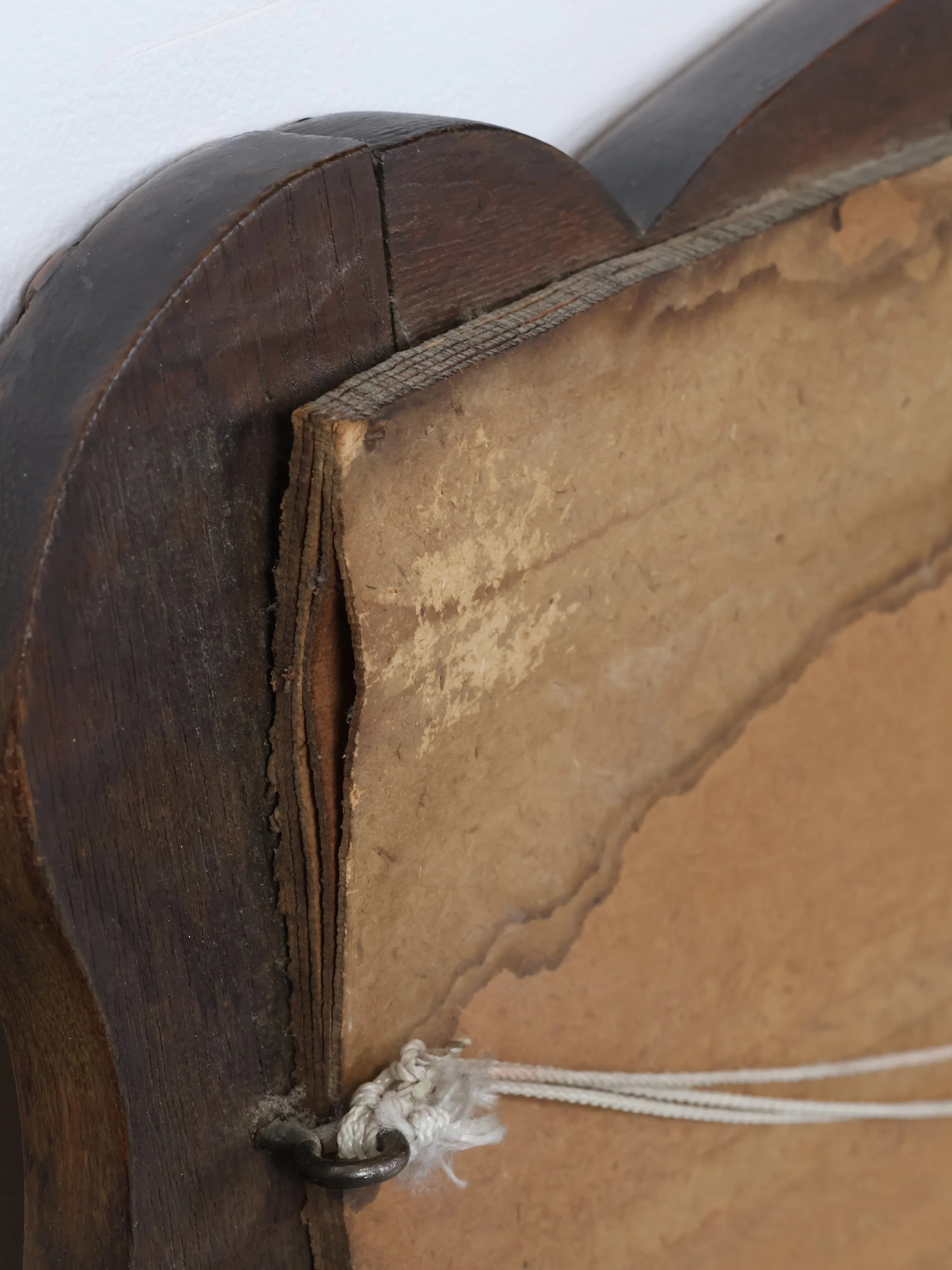 オーソドックスな形状ののウッドフレームに彫刻がアクセントになったヨーロッパならではのデザイン。