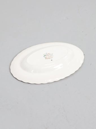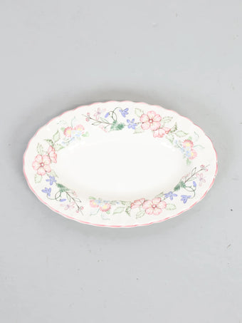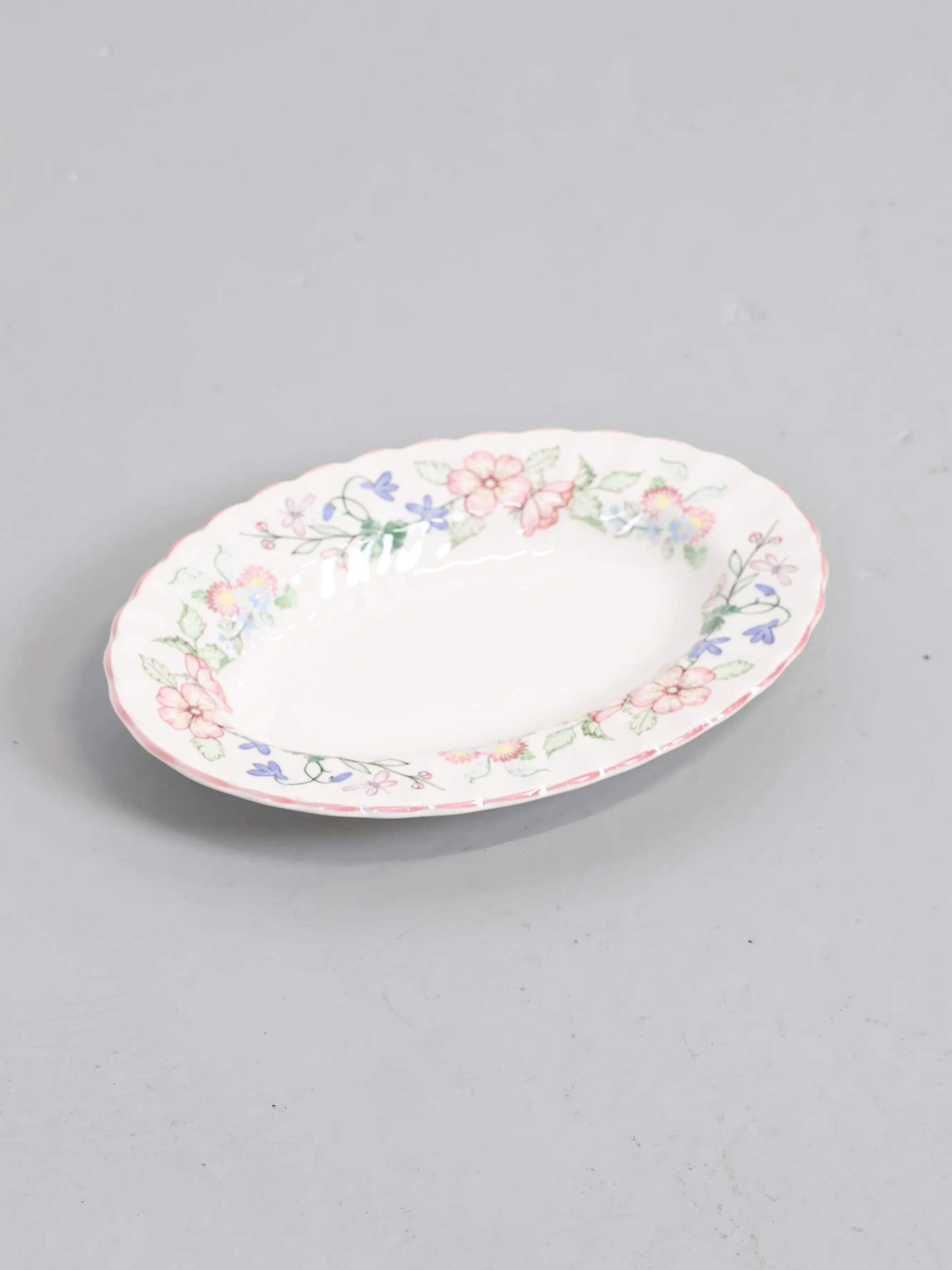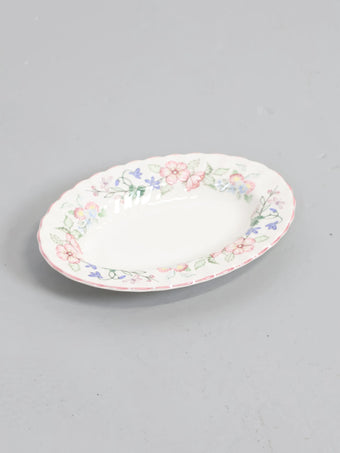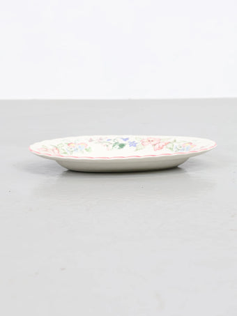 ヴィンテージ ピンクライン フラワーフリント ホワイトセラミック プレート