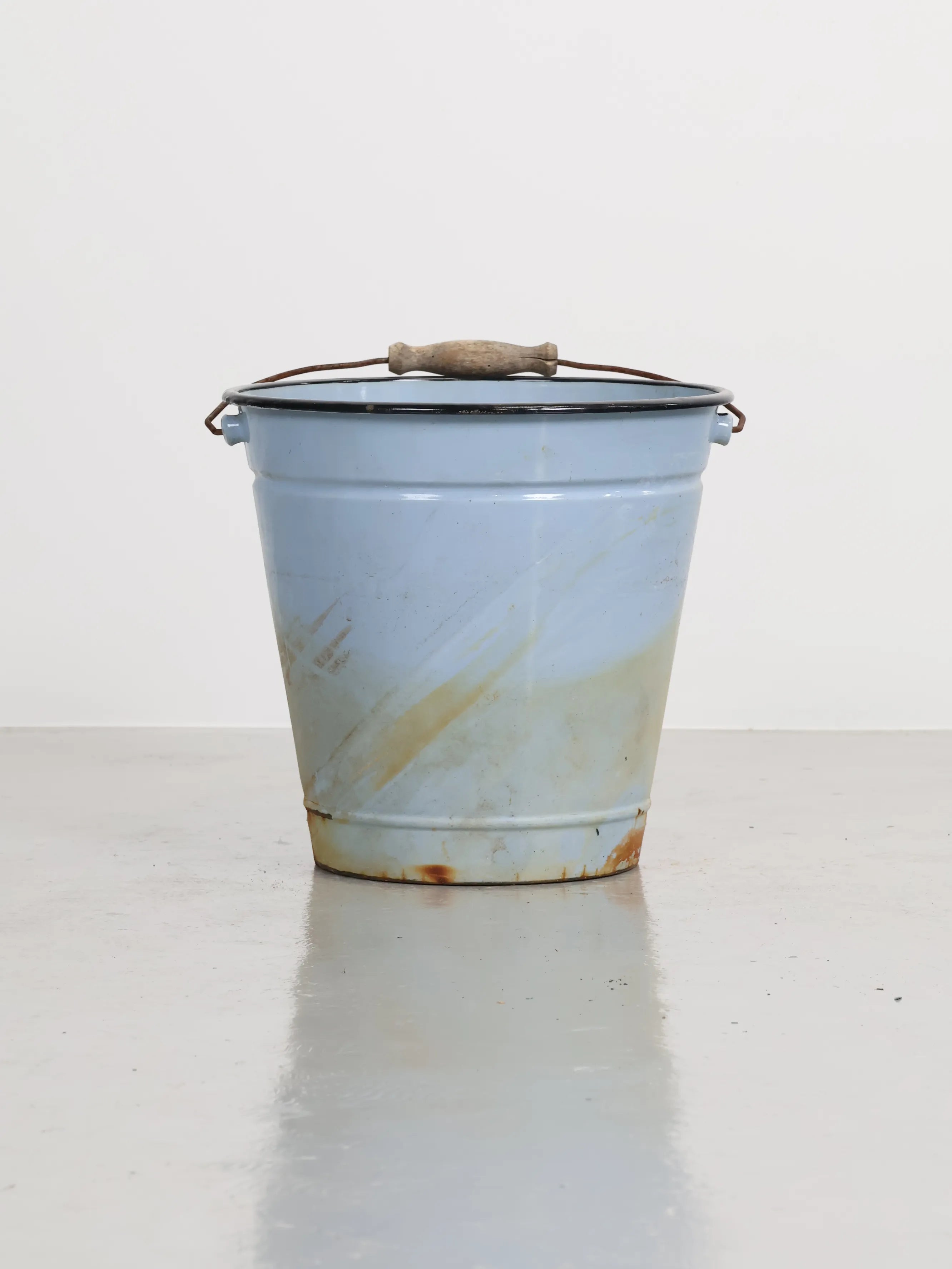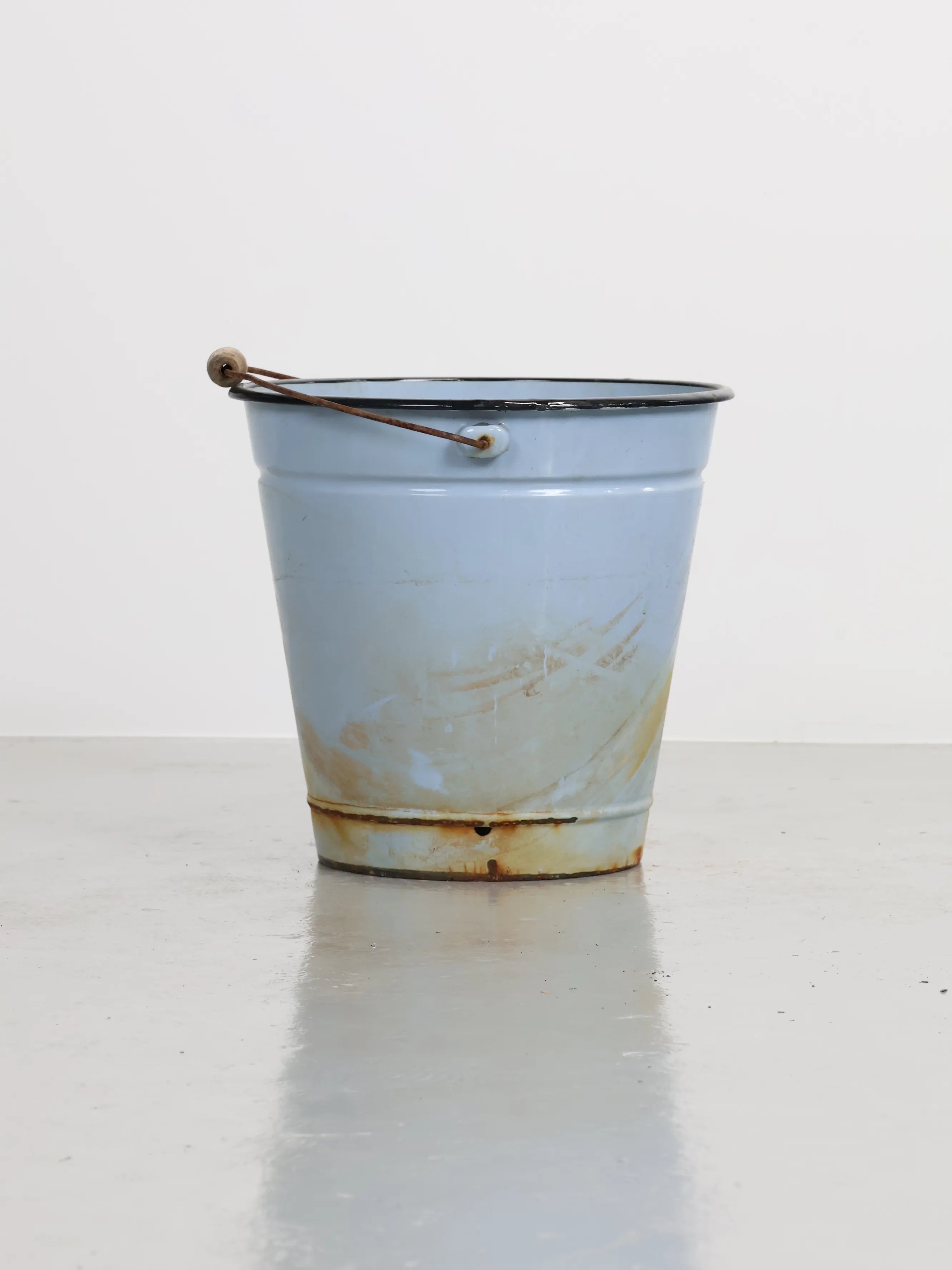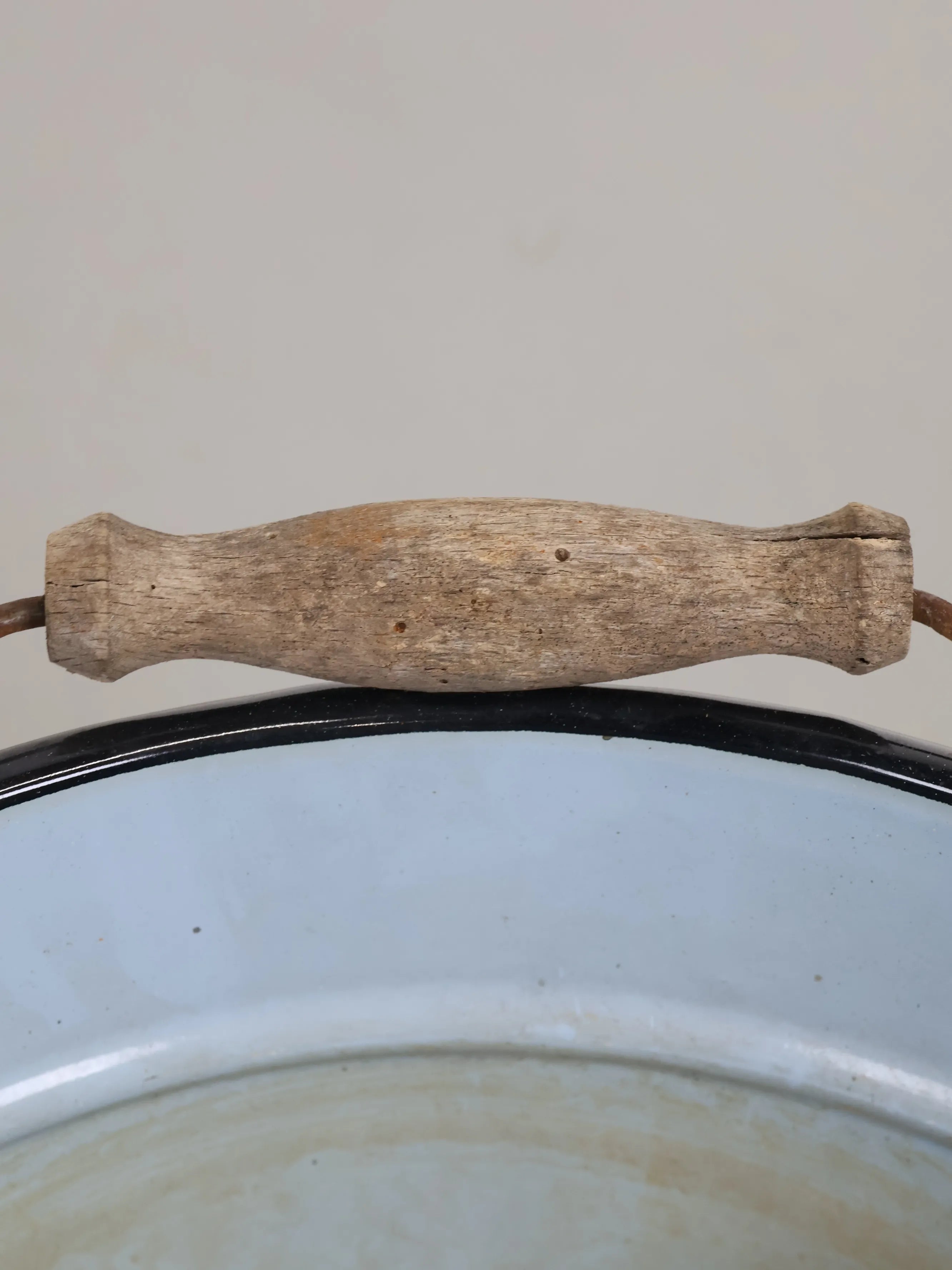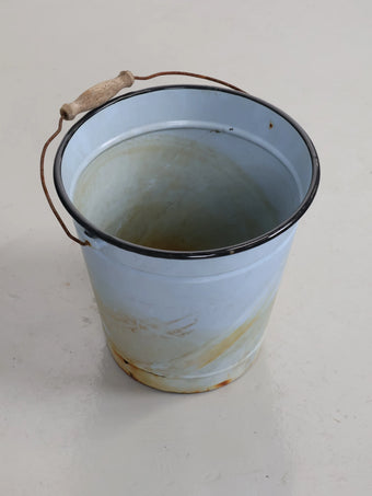 ヴィンテージ ライトブルーエナメル ヨーロピアン バケット バスケット