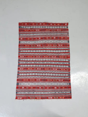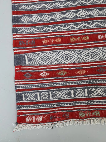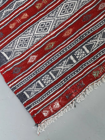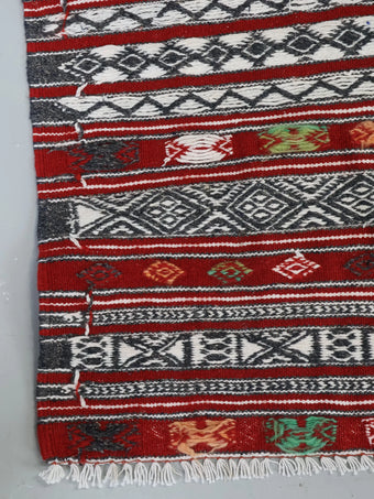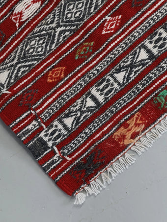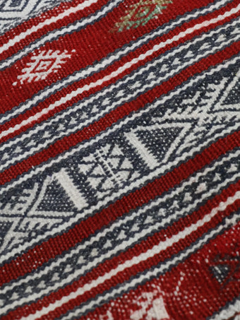 モロッコで100年程前に人の手によって丁寧に織られ、その細かさから優しさや暖かさを感じることのできるラグ / キリムとなっております。