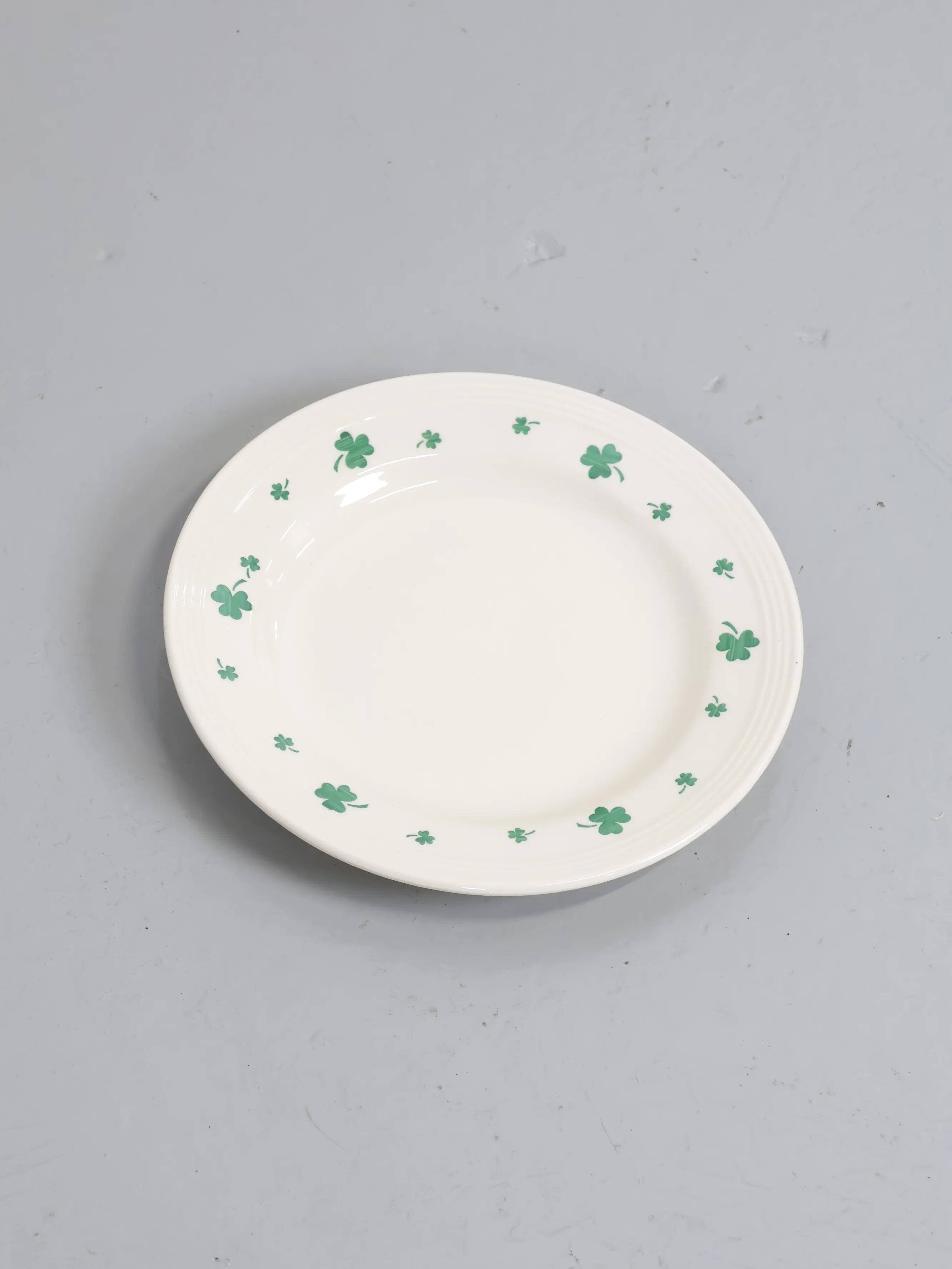 幸せの象徴として知られるシャムロックがお皿の周りに描かれた愛らしいデザイン。