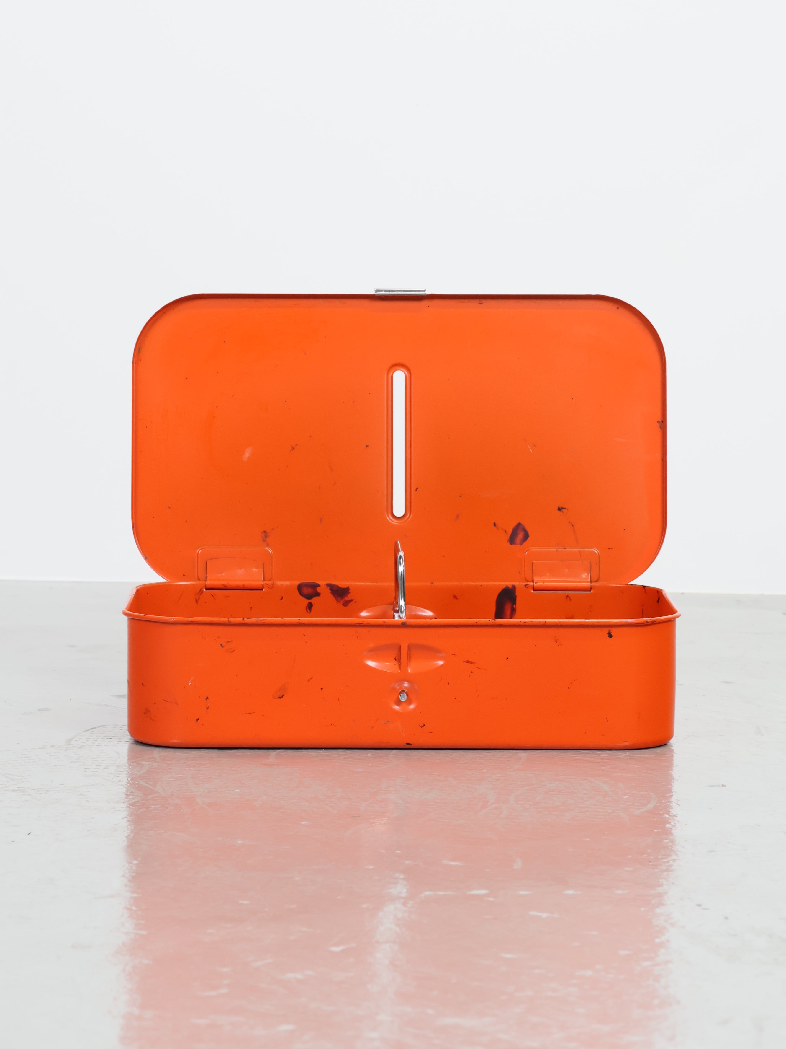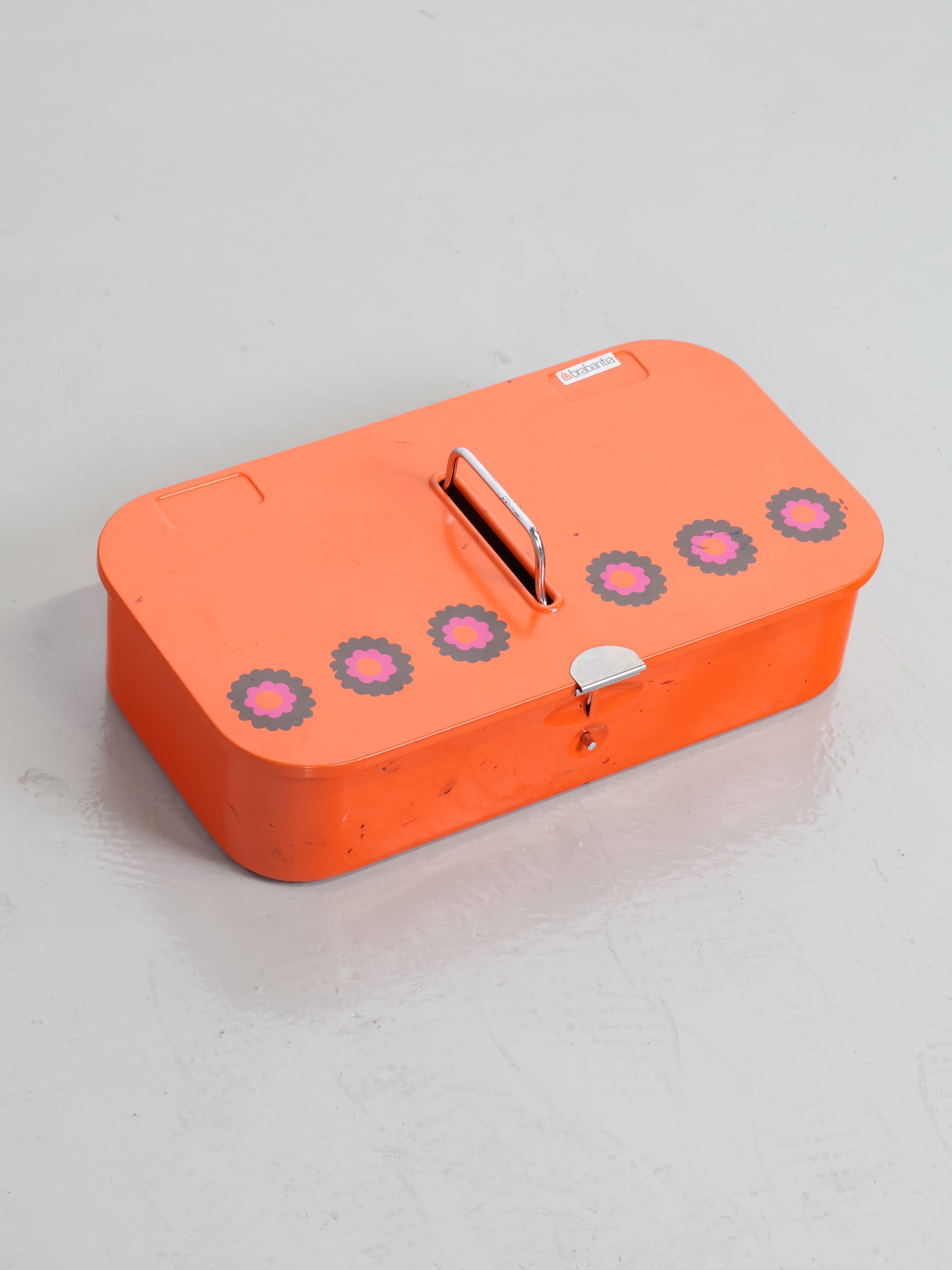 ヨーロッパより買い付けました1970年代のBrabantia社製 Patriceデザイン オレンジシュークリーニングメタルツールボックスです。