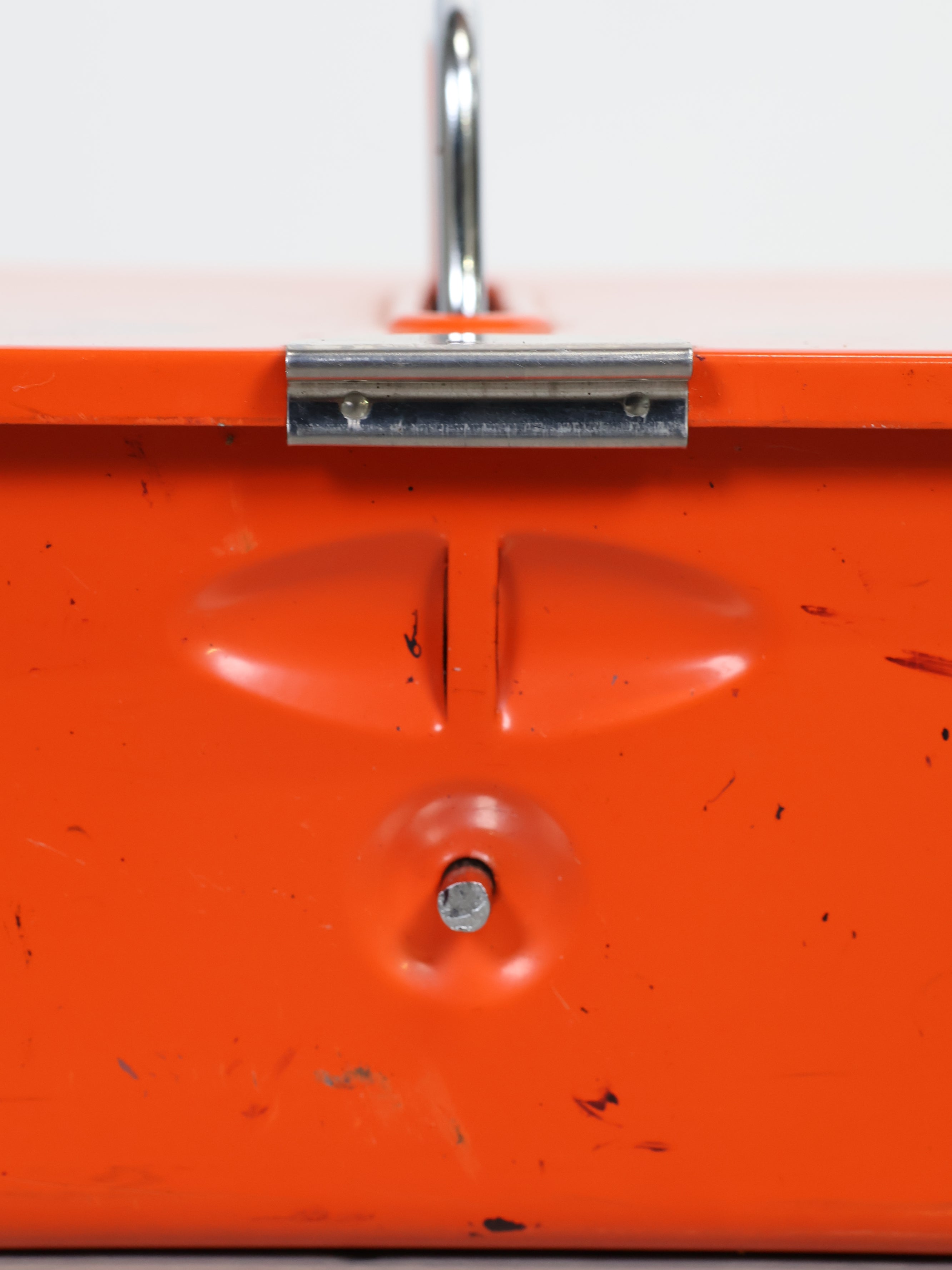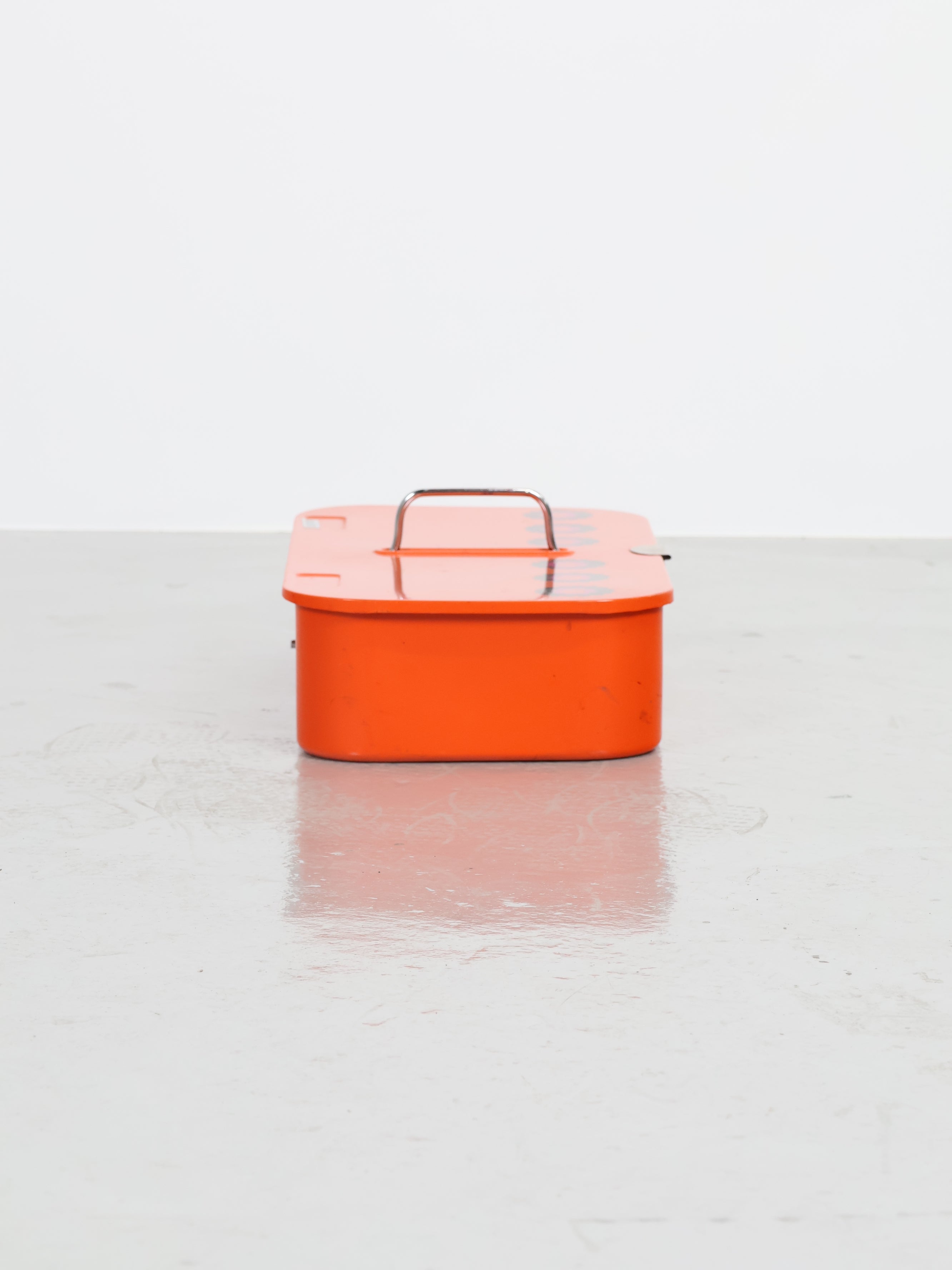 1970年代 Brabantia社製 ヴィンテージ Patriceデザイン オレンジ シュークリーニング メタル ツールボックス