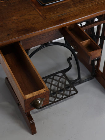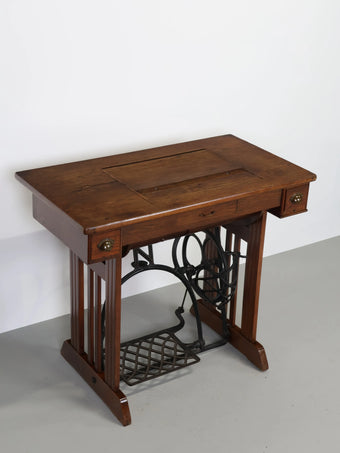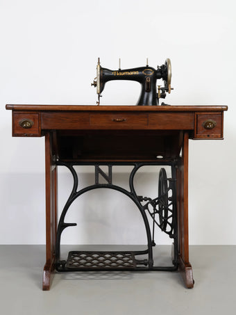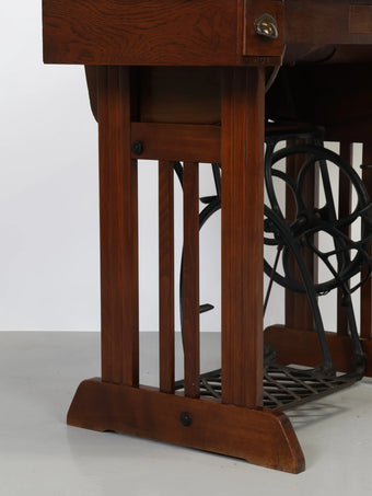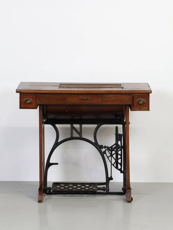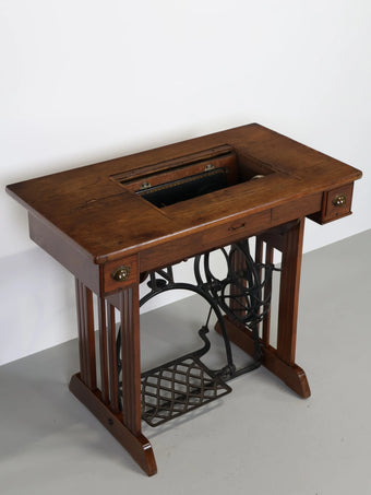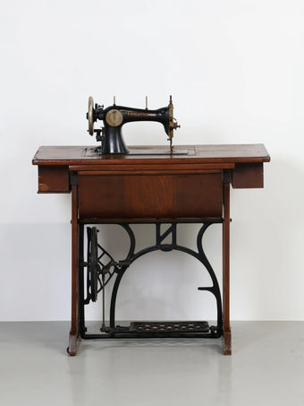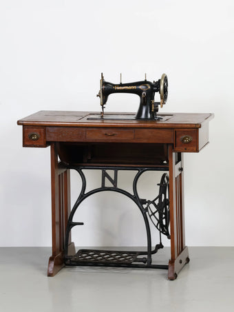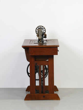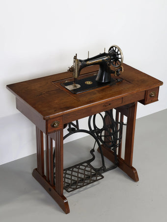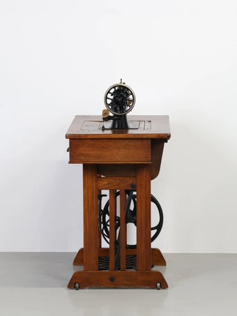歴史を感じる味わい深い表情のウッドのキャビネットに、アンティークミシンが現代には無いノスタルジックな雰囲気を醸し出しています。