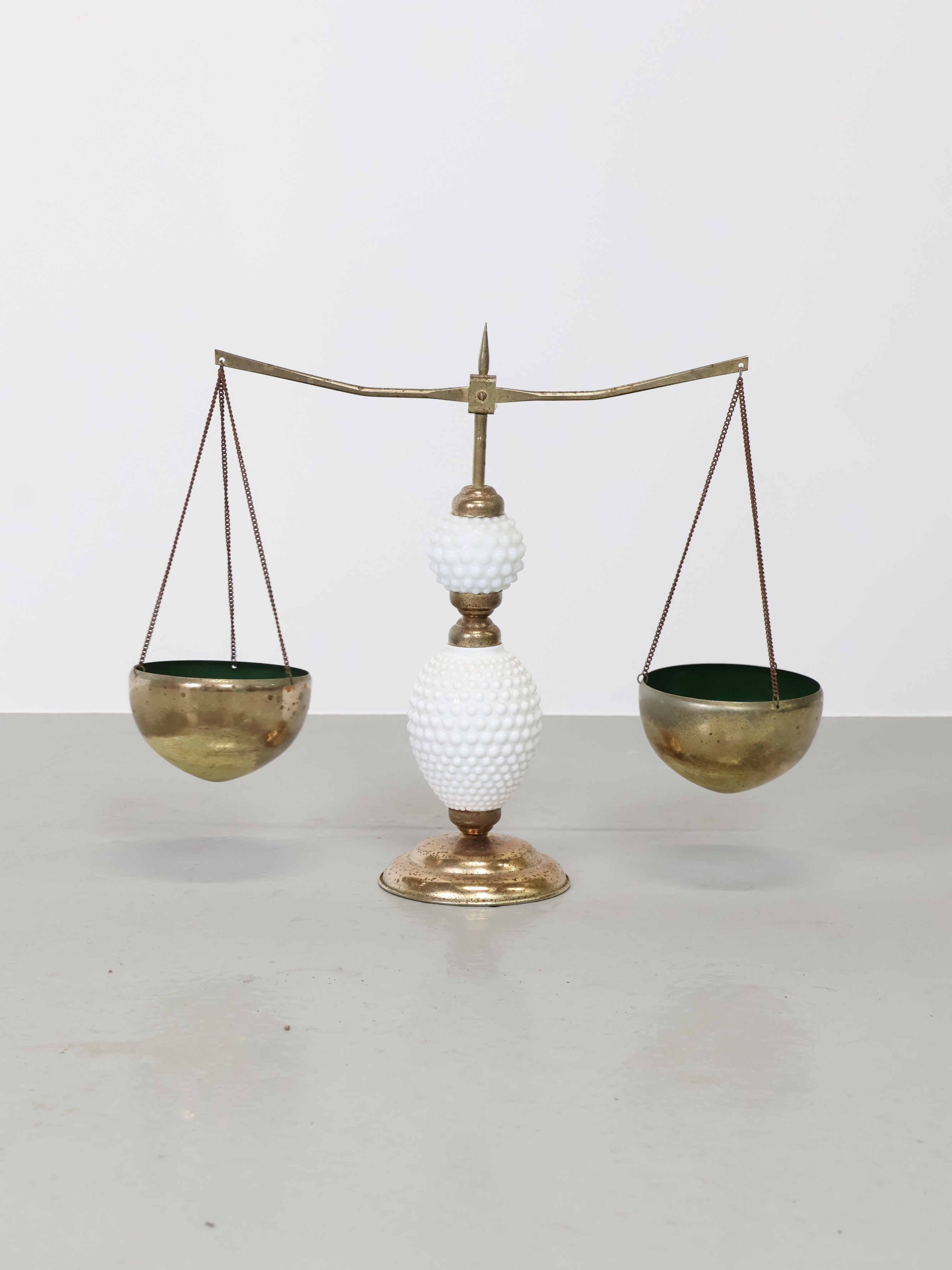 ヨーロッパより買い付けました1960年代-1970年代のミルクガラスベースバランス天秤です。