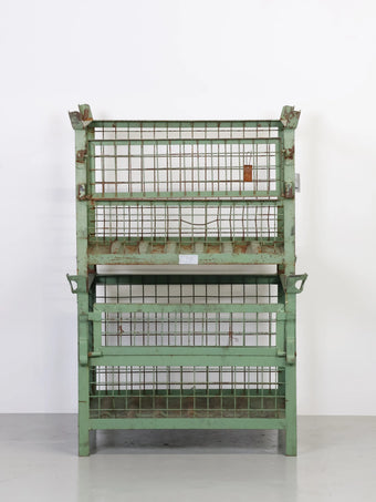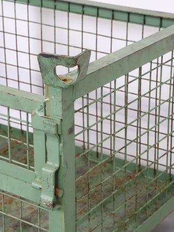 1970 - 80年代 ヴィンテージ ライトグリーンメタル スタッキング インダストリアル ワイヤーメッシュ コンテナ