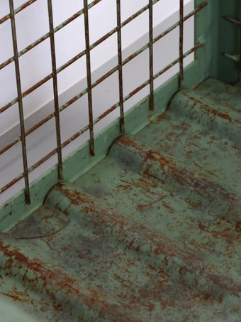 グリーンのペイントが剥がれ、サビが浮き出た経年変化による味わい深い表情はヴィンテージならではとなっております。