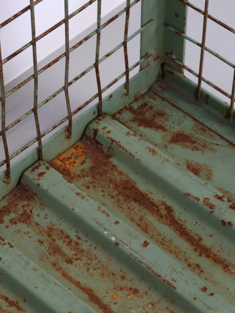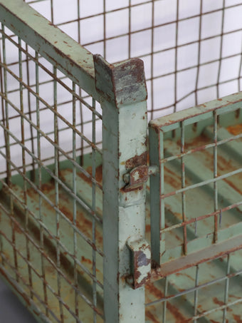 - 品名:ヴィンテージ ライトグリーンメタル スタッキング インダストリアル ワイヤーメッシュ コンテナ