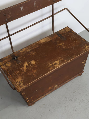 ヨーロッパより買い付けました1950年代-60年代のウッド ストレージ ベンチです。