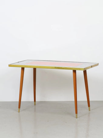 ポップでレトロなモザイク柄のような幾何学模様が天板にガラスでデザインされているミッドセンチュリーならではの逸品。