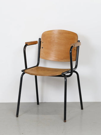 ヨーロッパより買い付けました1950年代-60年代のヴィンテージメタルフレームウッドアームチェアです。