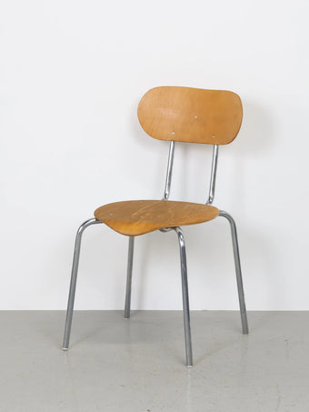 ヨーロッパより買い付けました1980年代-90年代のメタルフレームウッド スクールチェアです。