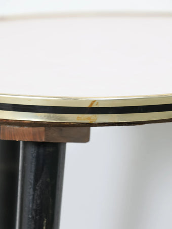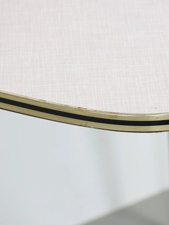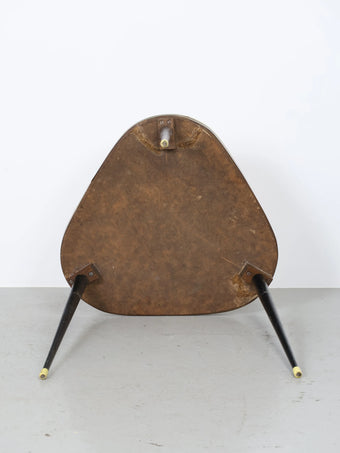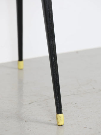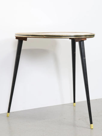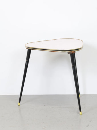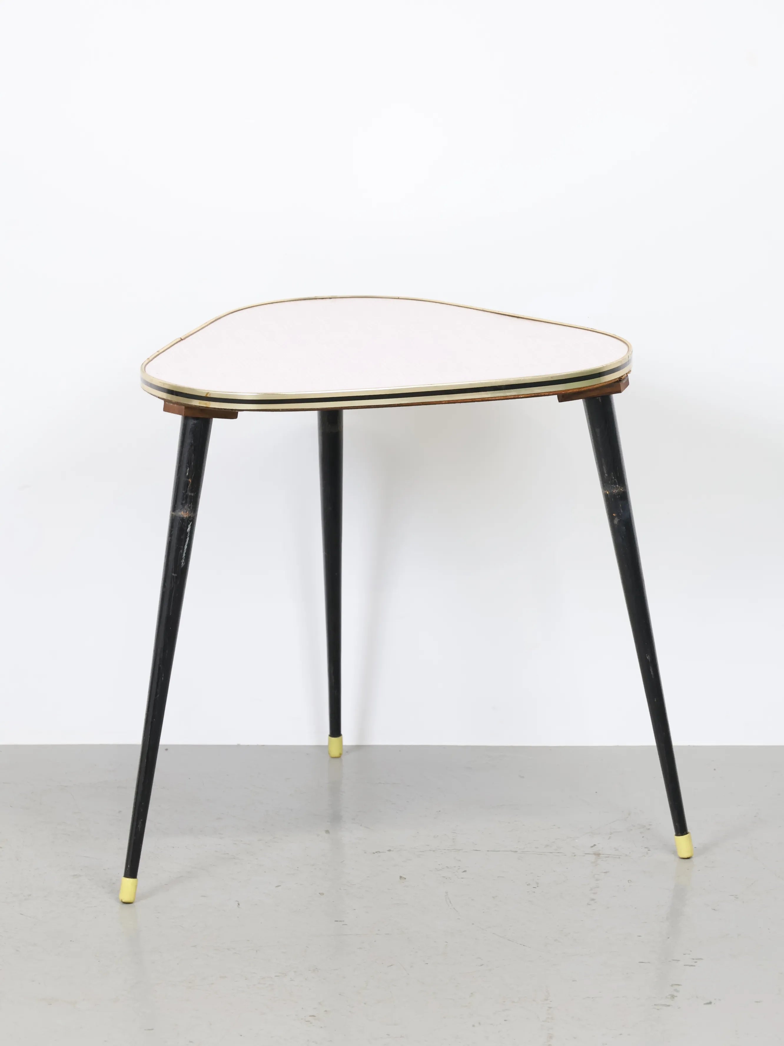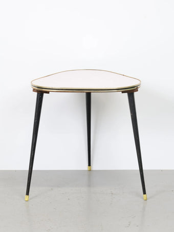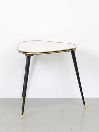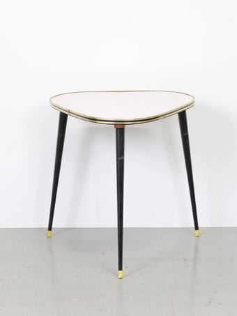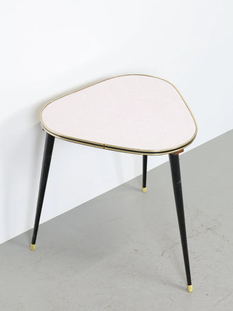 うっすらと細かく格子状に模様が入ったトライアングル型の天板と美しいフォルムの脚が50'sならではのデザイン。