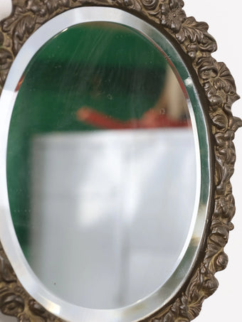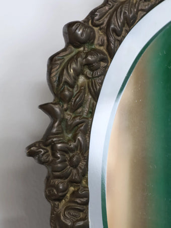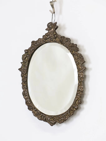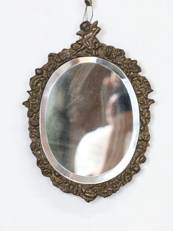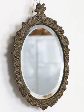 1950 - 60年代 ヴィンテージ キューピット & フローラルデザイン ブラスフレーム ウォールミラー 鏡