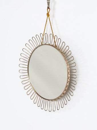 1960年代 ヴィンテージ スカルプチュアル メタルフレーム ラウンド ウォールミラー 鏡