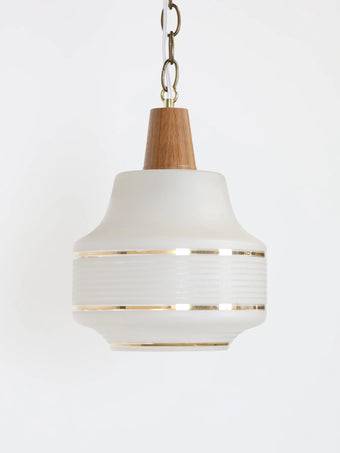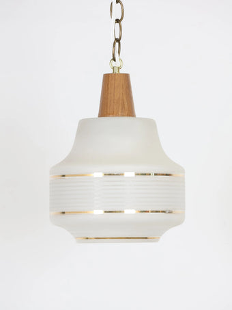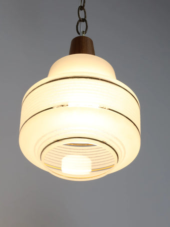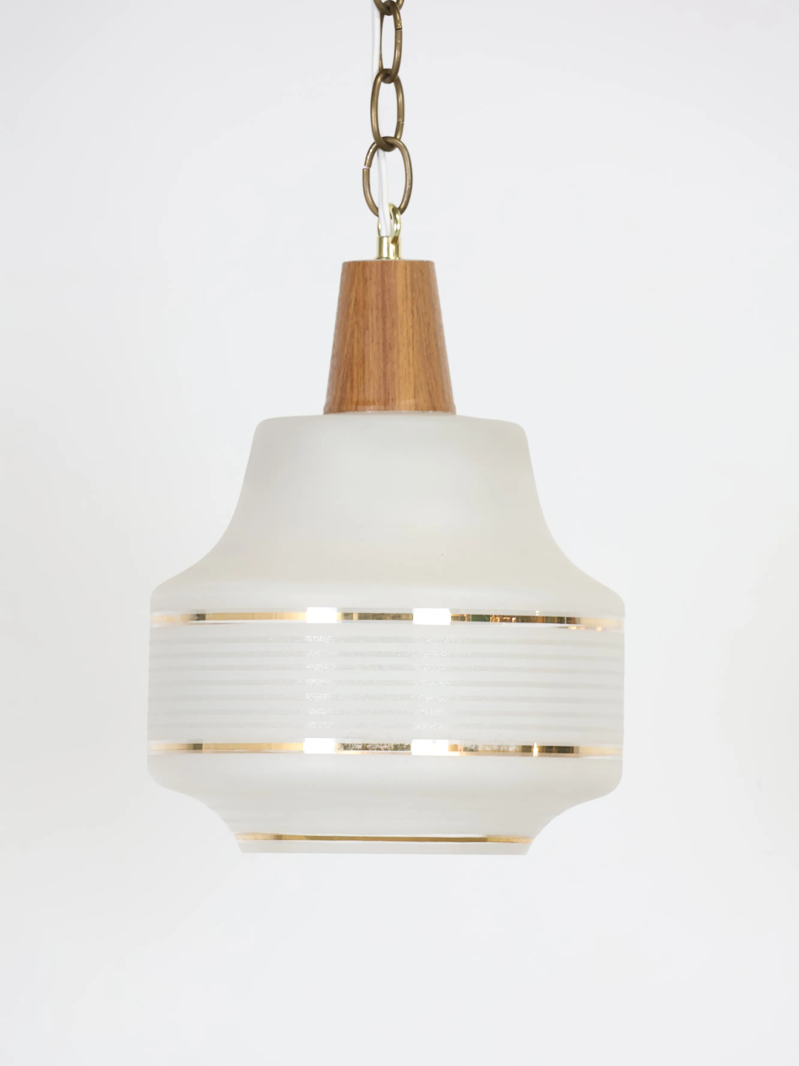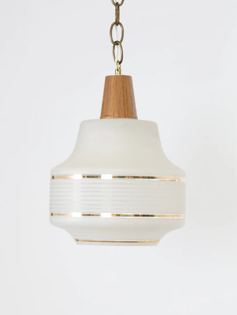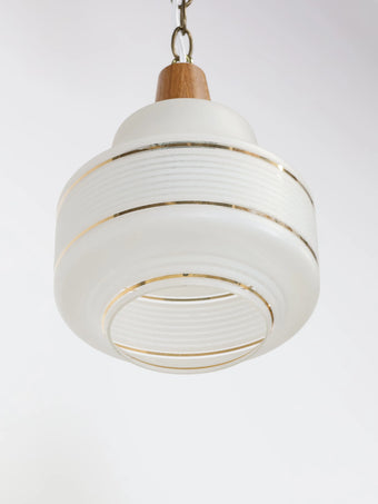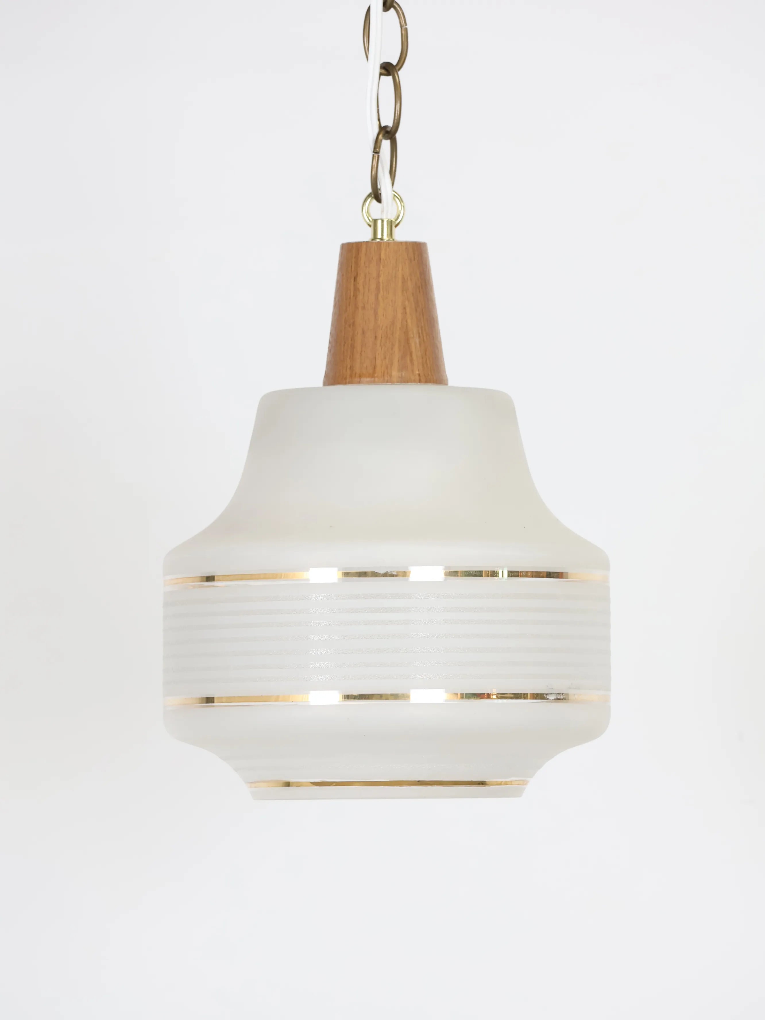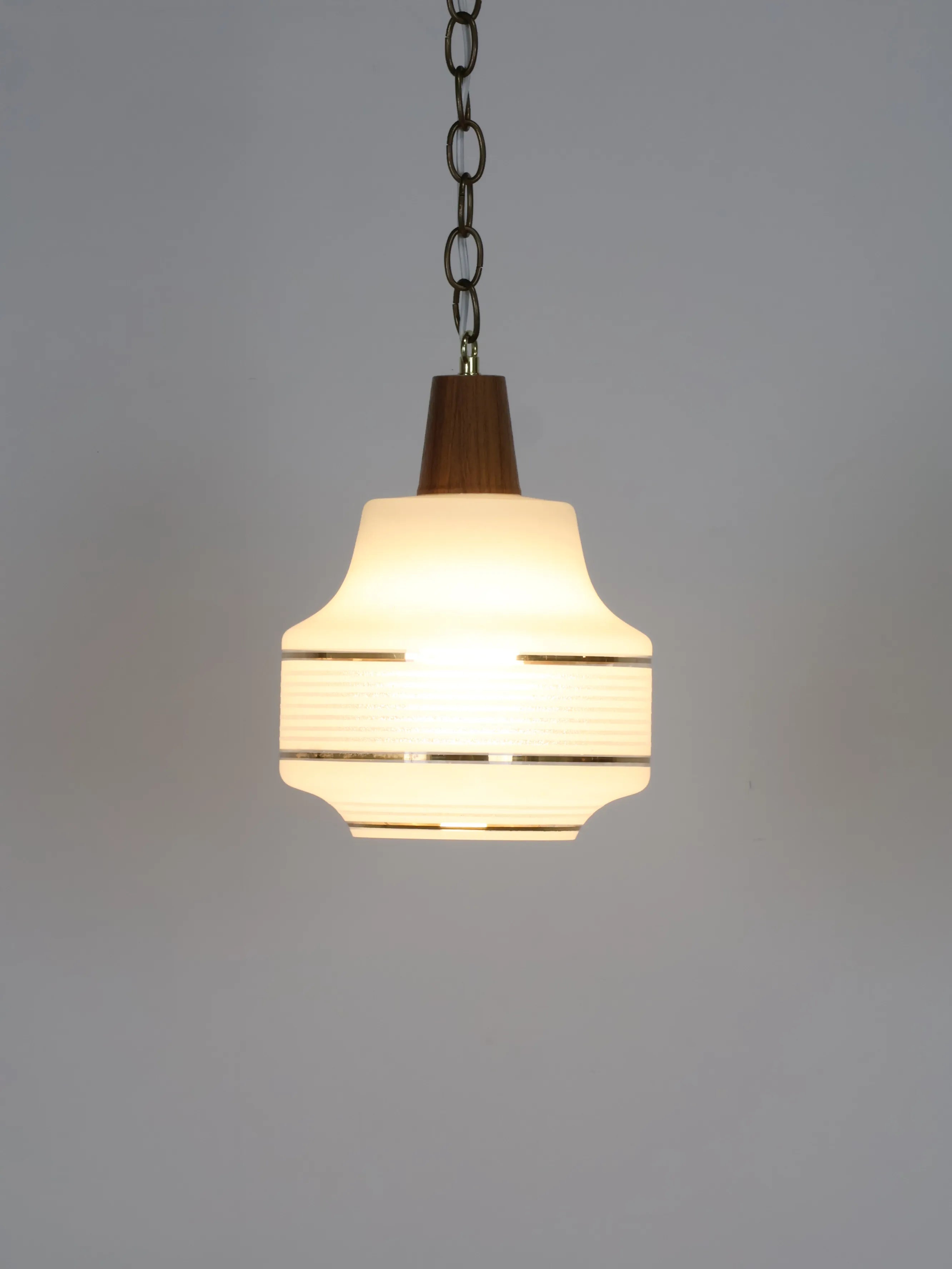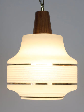 1960年代 ヴィンテージ ホワイトガラス ゴールドライン スカンジナビアン ペンダントランプ