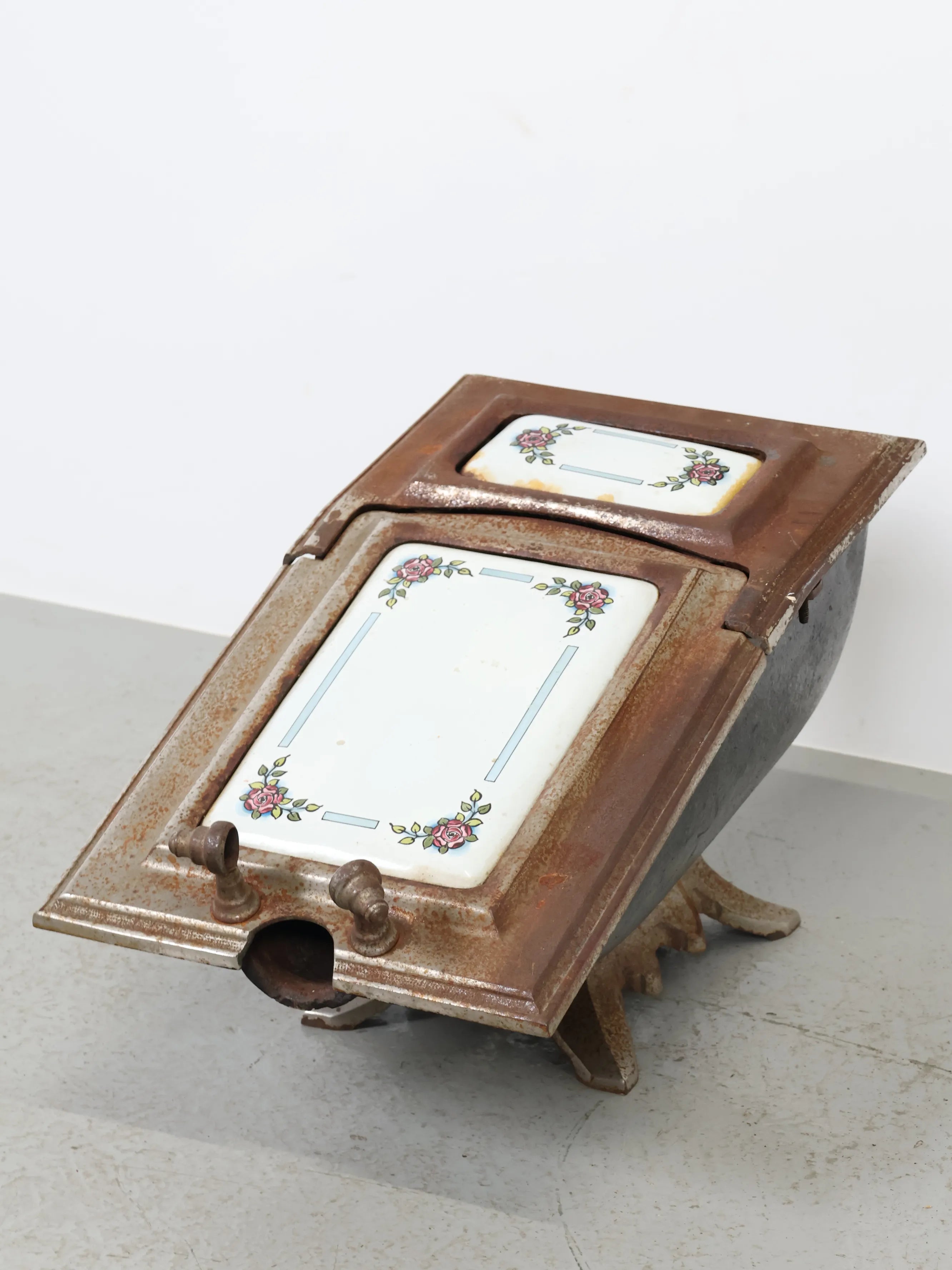 かつては石炭入れとして使用されていたメタル製のボックス。