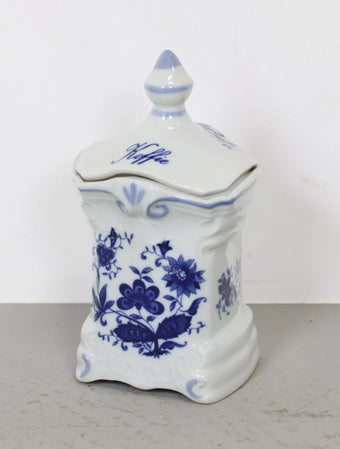 1940 - 50年代 ヴィンテージ ブルー & ホワイトセラミック フローラル Koffie ストレージ ジャー