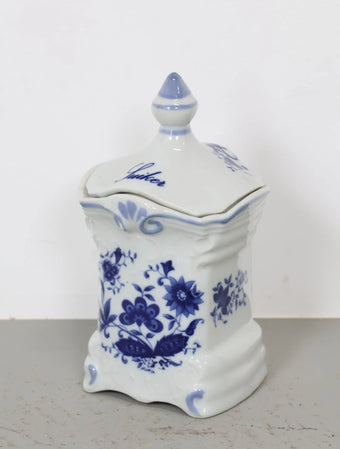 1940 - 50年代 ヴィンテージ ブルー & ホワイトセラミック フローラル suiker ストレージ ジャー