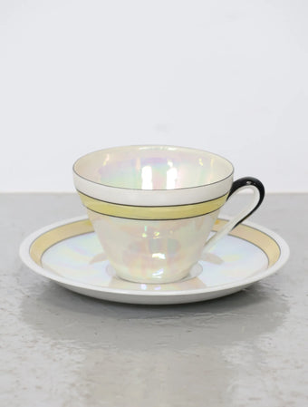 1950 - 60年代 ヴィンテージ イエローライン ホワイトセラミック カップ & ソーサー