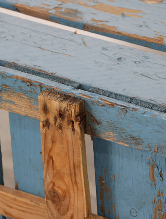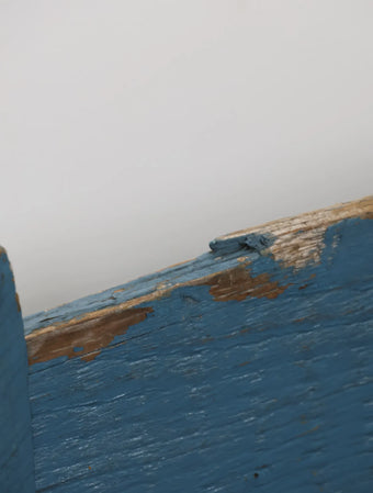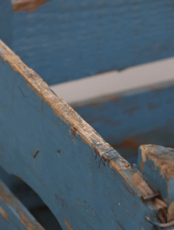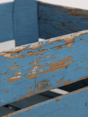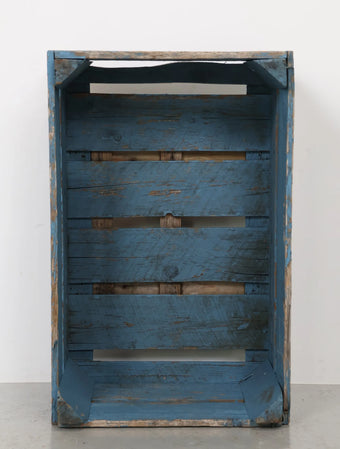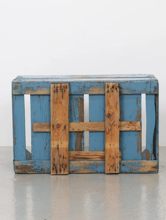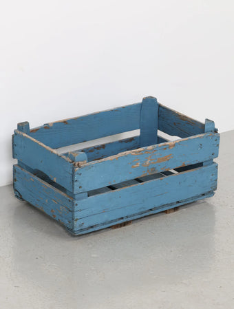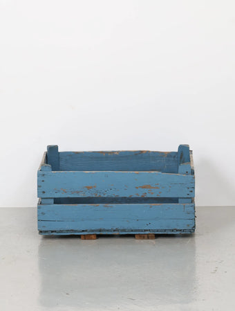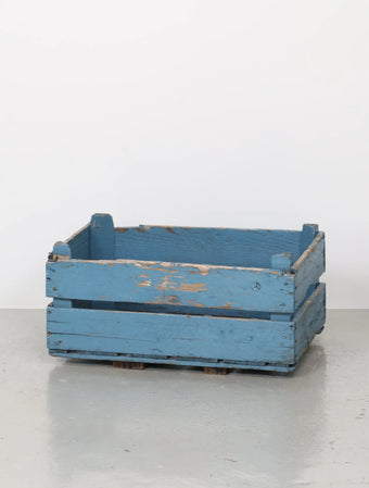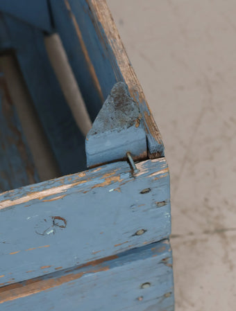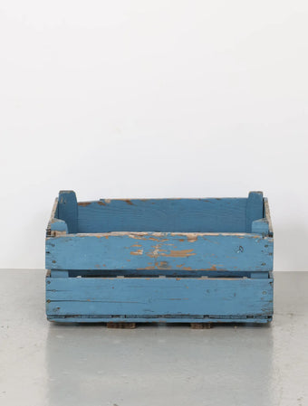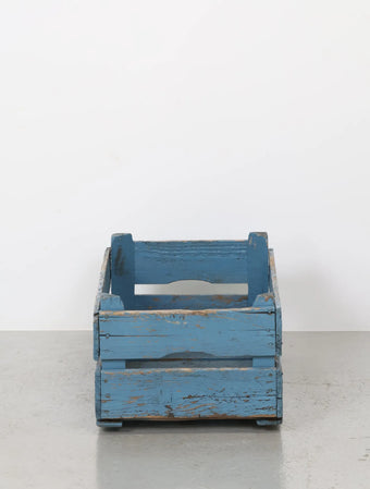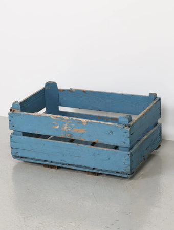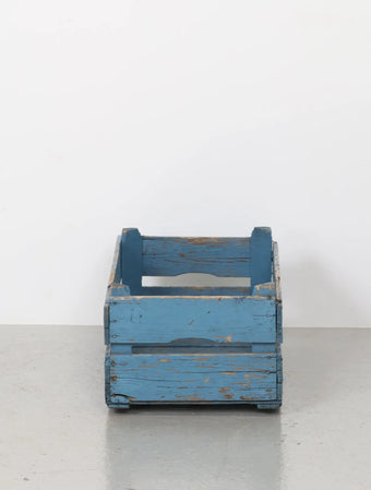 ヨーロッパヴィンテージならではの淡いポップなブルーペイントが空間のアクセントになる木箱。