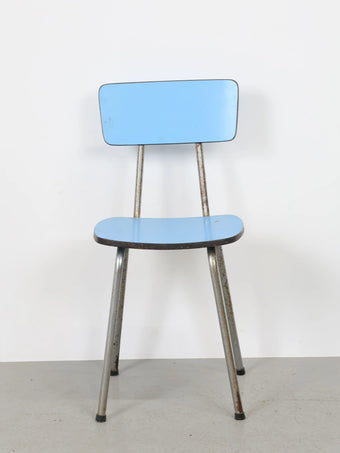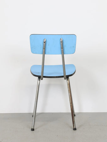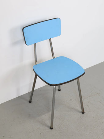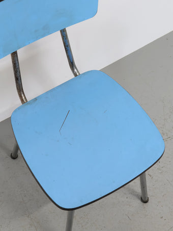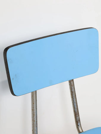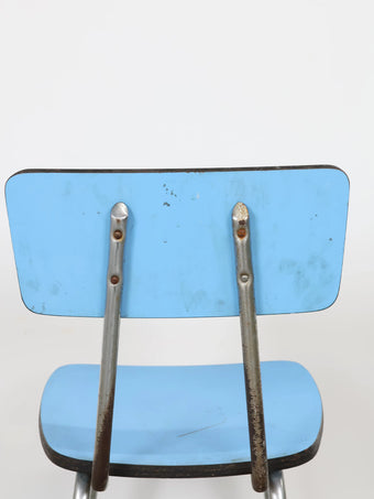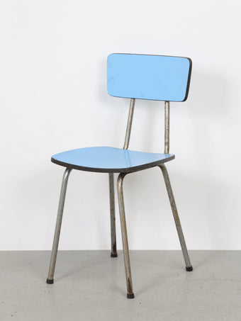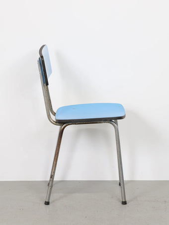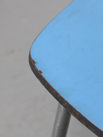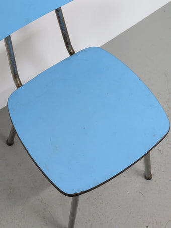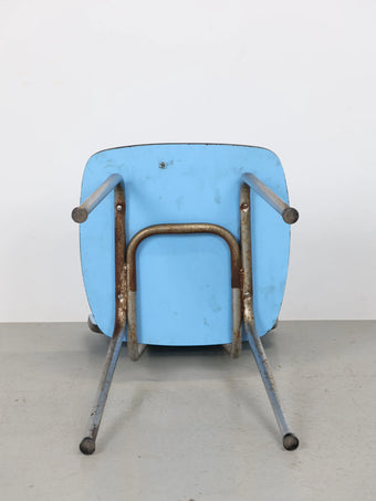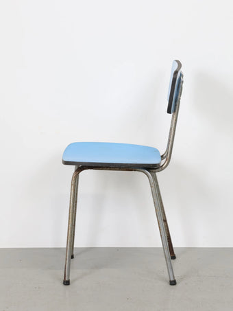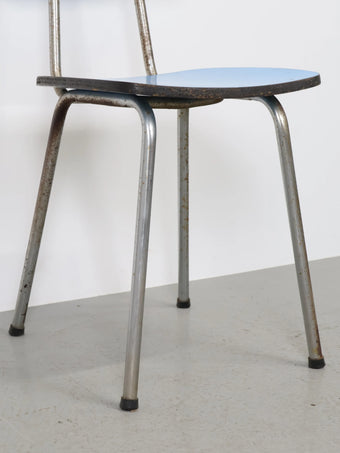 ヨーロッパより買い付けました1950年代-60年代のメタルフレームブルーウッドダイニングチェアです。