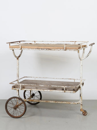 ヨーロッパより買い付けました1940年代-50年代のメタルフレーム2段ワゴンです。