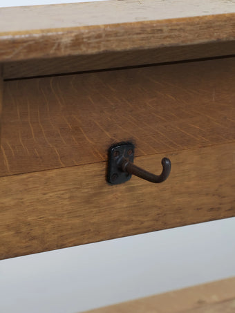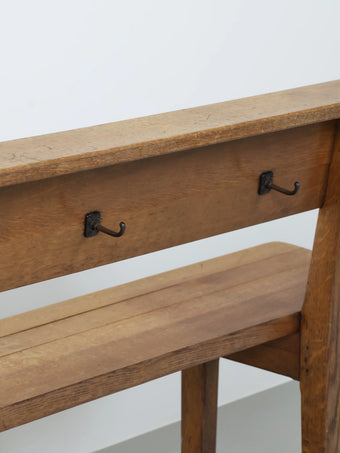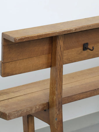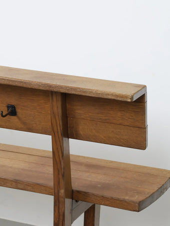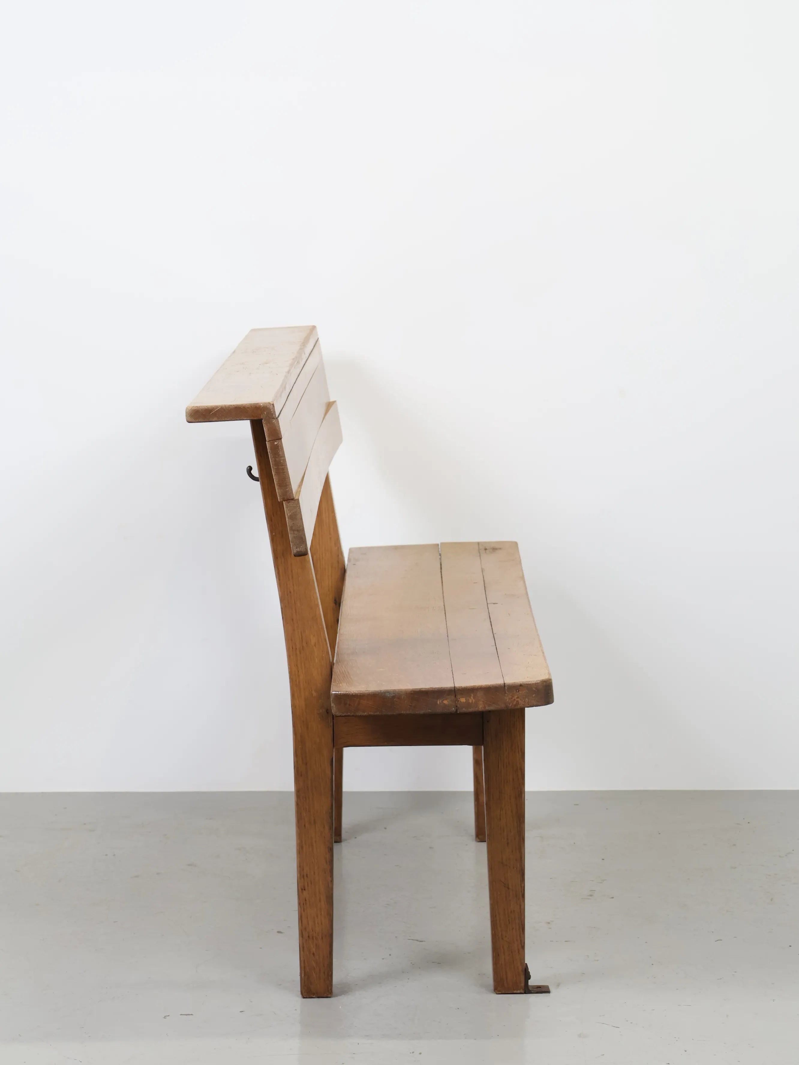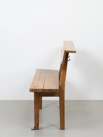 実際に教会で使用されていたベンチで、背もたれの後ろにはフックが付いていて様々な物を掛けることができます。