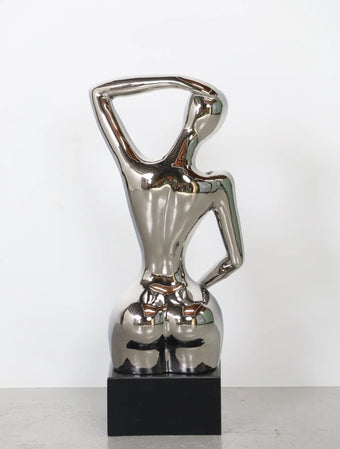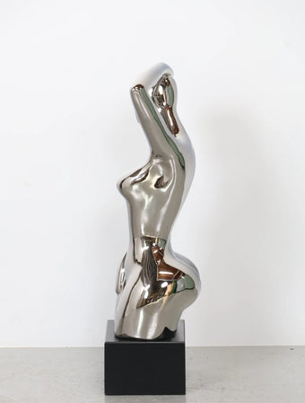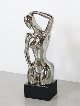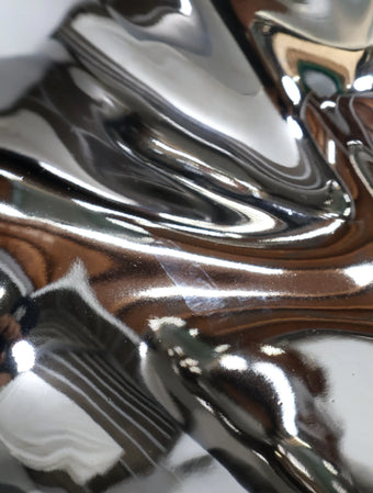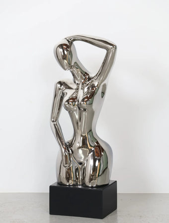 滑らかな曲線美と艶やかなメタリック仕上げが目を引くアートオブジェ。