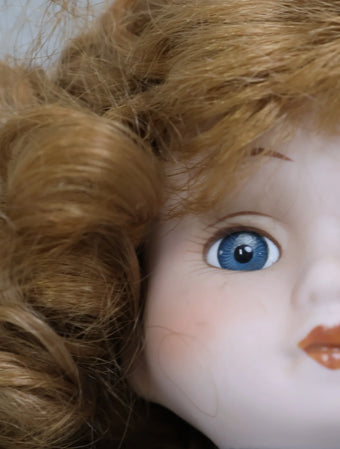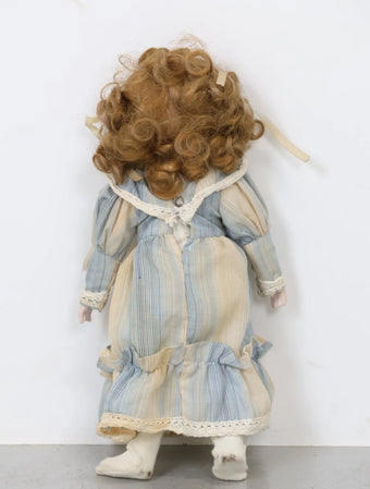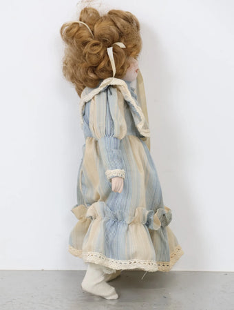 青く澄んだ瞳と繊細に描かれた表情は、時代を超えて愛されてきた人形ならではの風格を感じさせます。