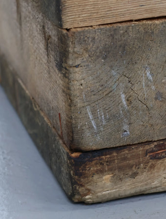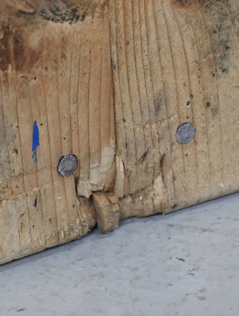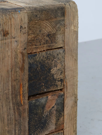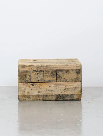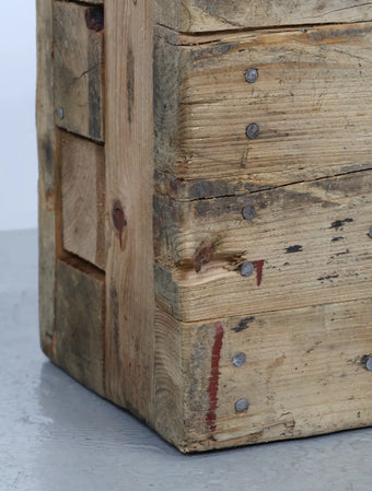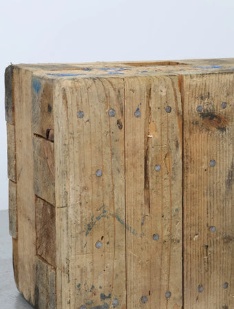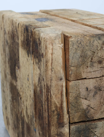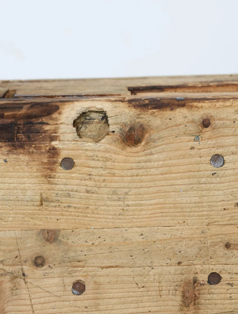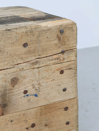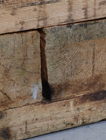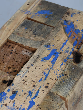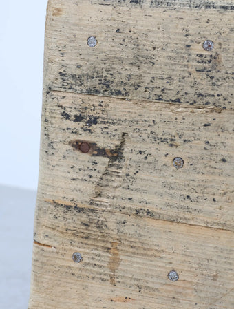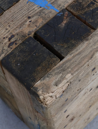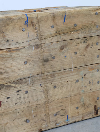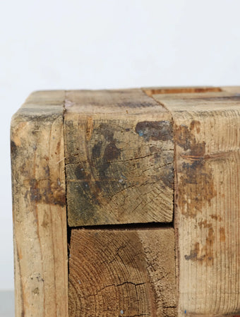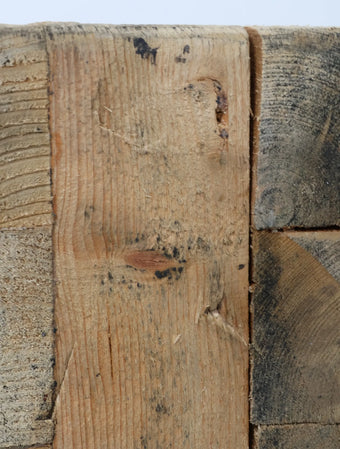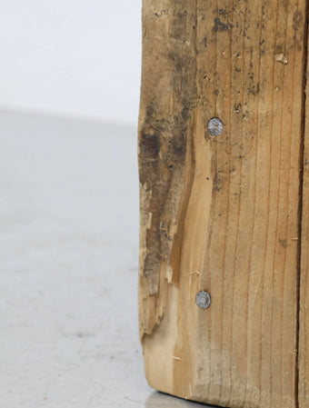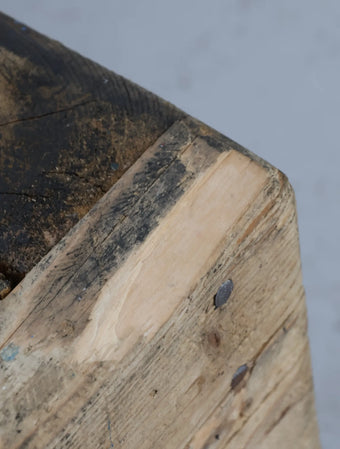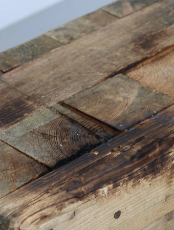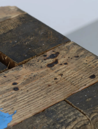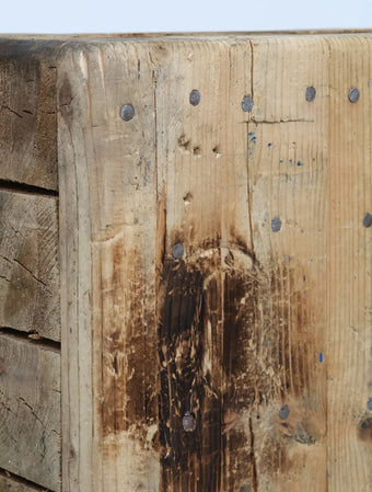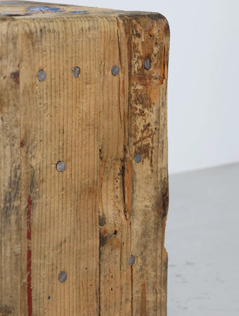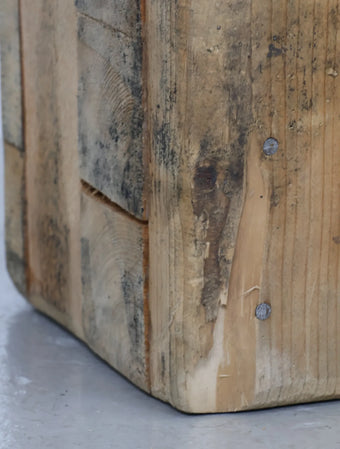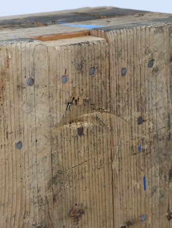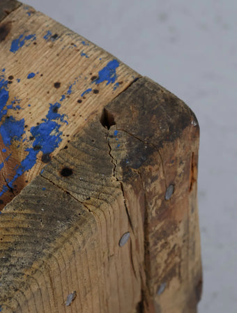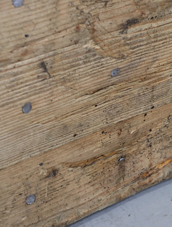 打痕や擦れ、焦げやペンキの付着痕など、長年の使用によって刻まれたディティールがそのまま残されており、素材としてのリアルな経年変化が空間に深みを与えます。