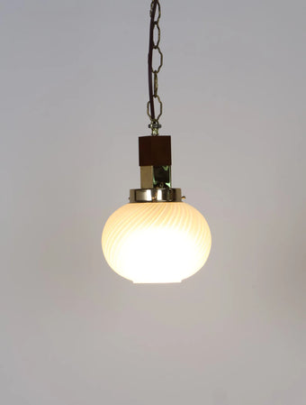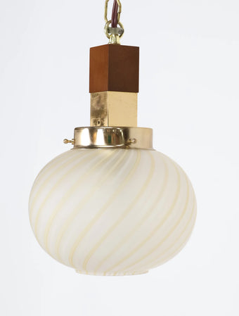 1960 - 70年代 ヴィンテージ ウッド & メタルベース フロストガラスシェード ペンダントランプ