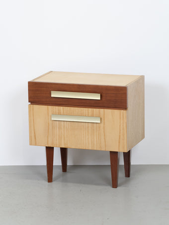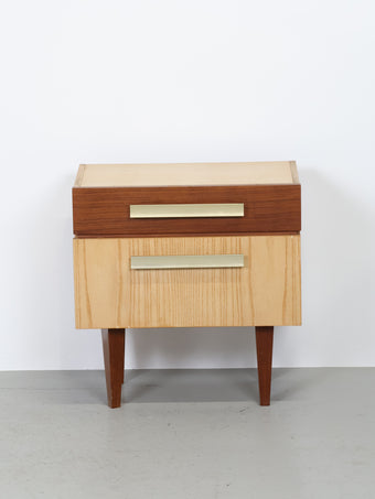 1960年代 ヴィンテージ ベージュ & ブラウン ウッド ナイトテーブル