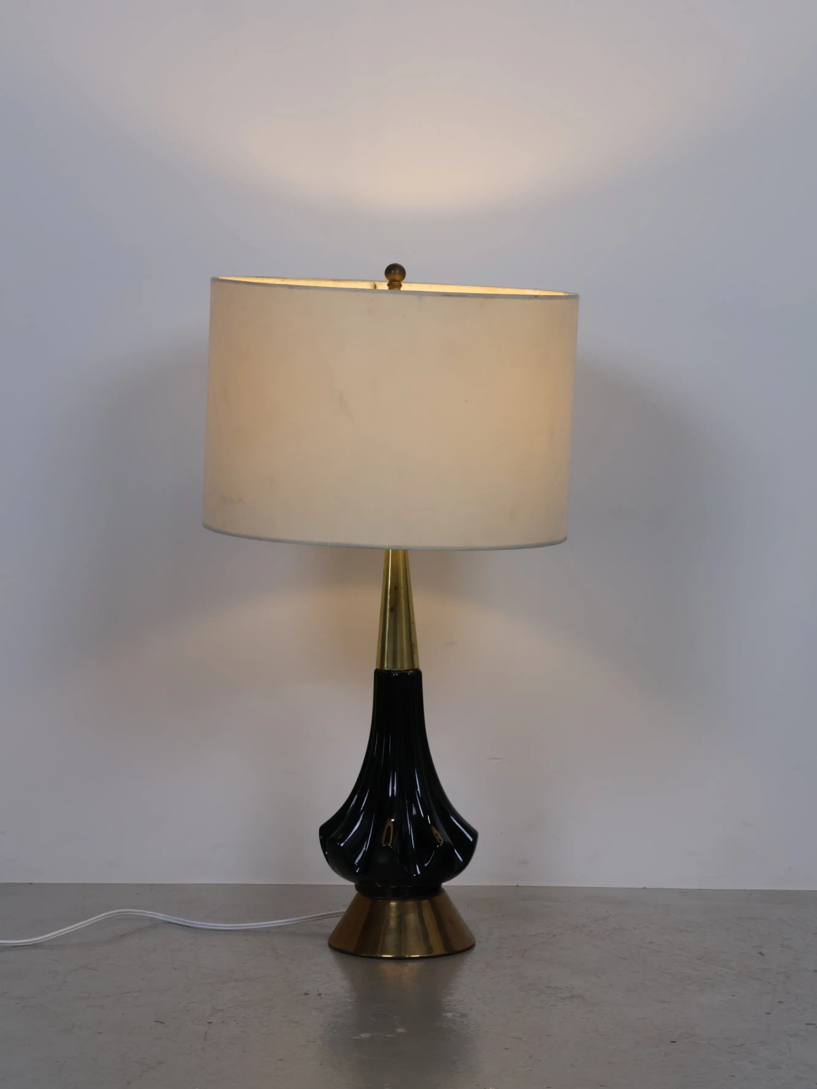 1950 - 60年代 ヴィンテージ ブラックセラミックベース ミッドセンチュリーモダン テーブルランプ