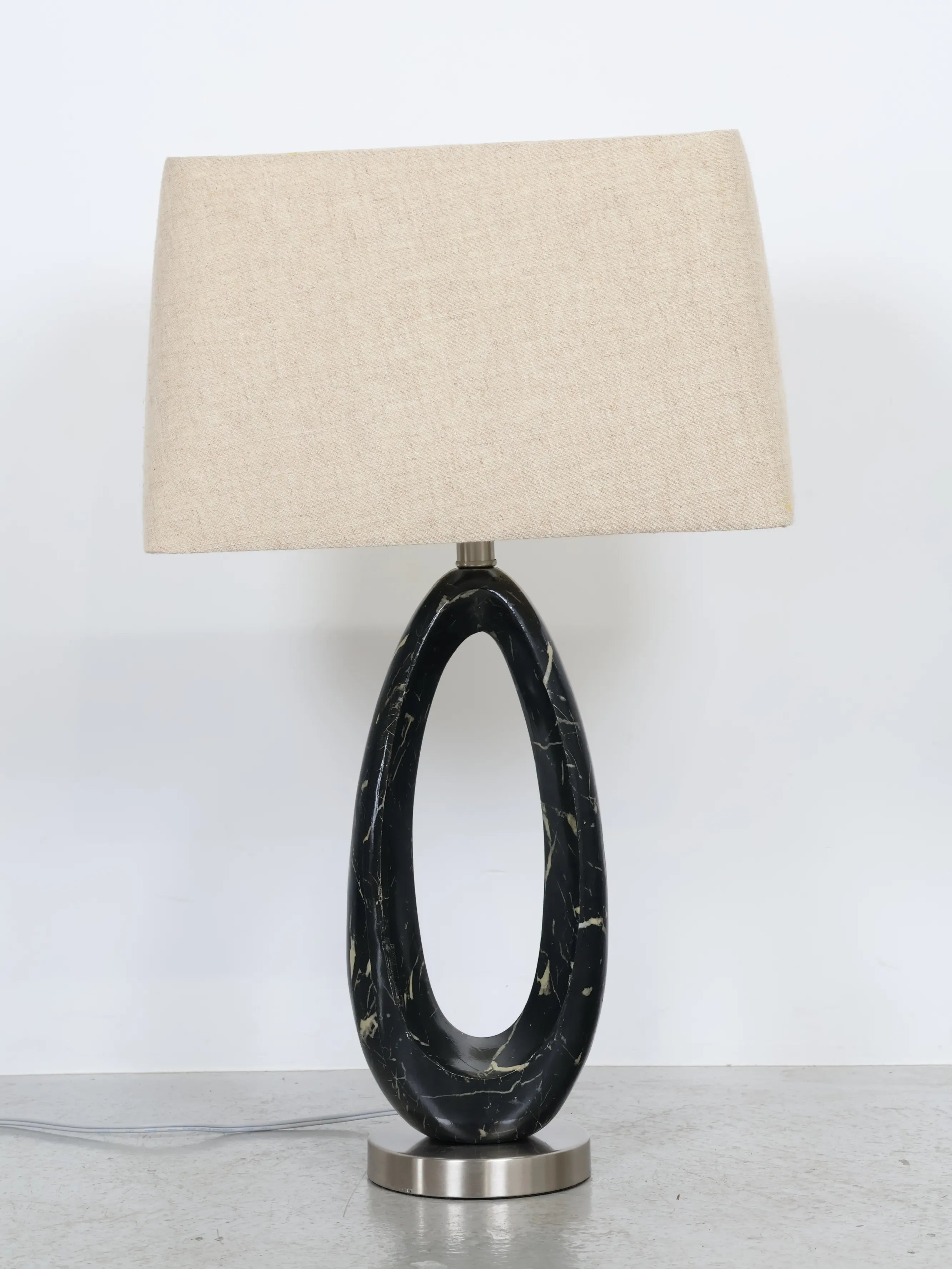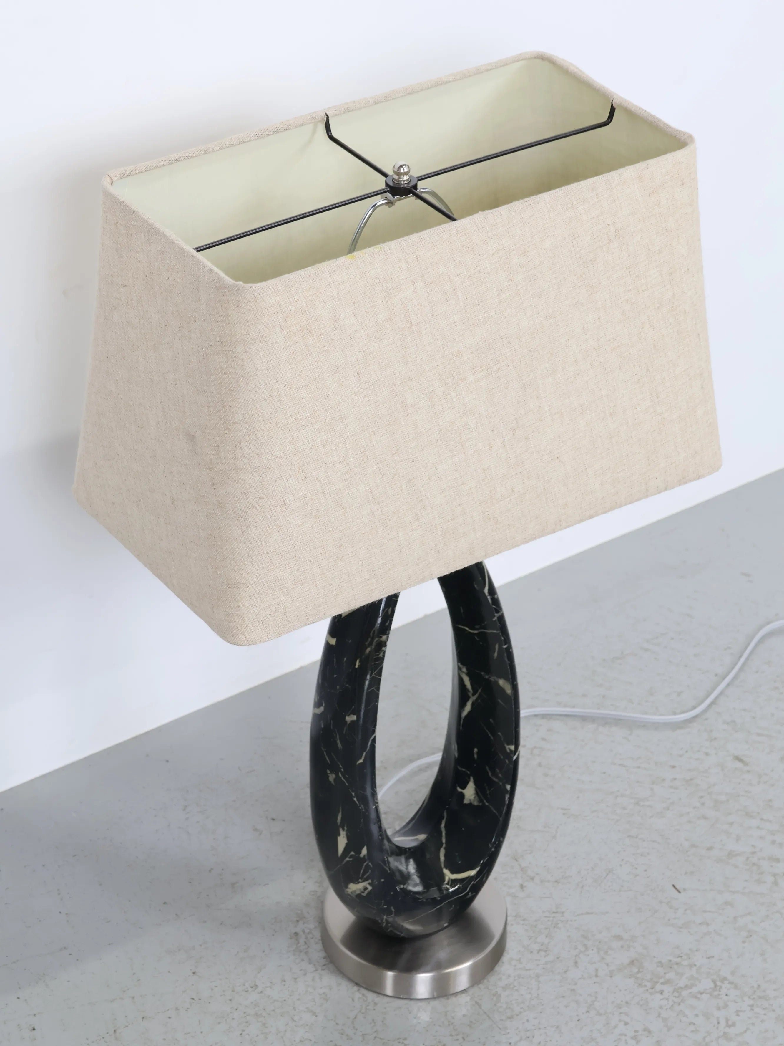 アメリカより買い付けました1970年代のブラックマーベルパターンベーステーブルランプです。