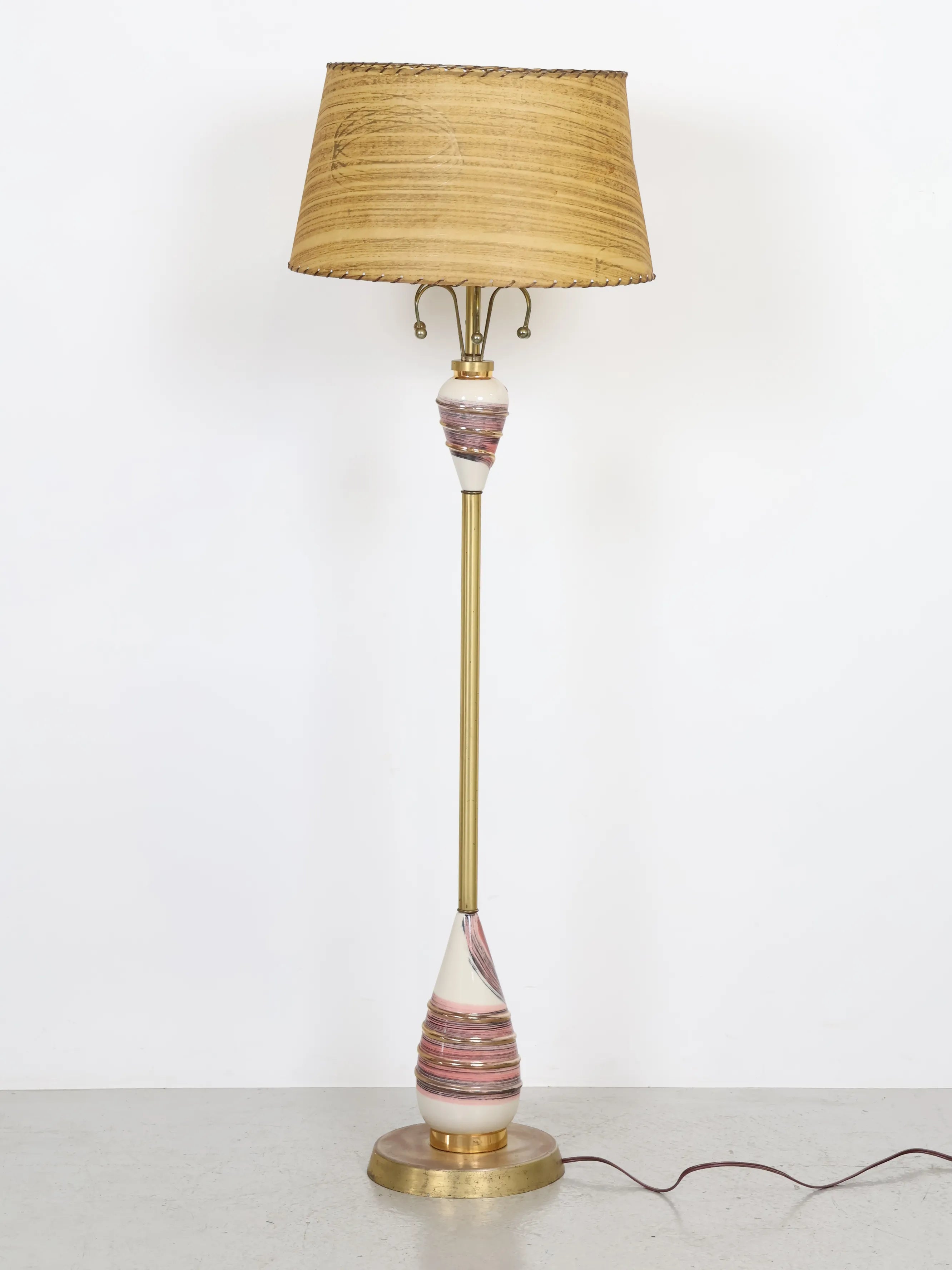 アメリカより買い付けました1950年代のセラミック&ブラスベースミッドセンチュリーモダンフロアランプです。