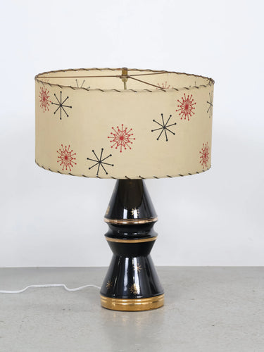 アメリカより買い付けました1950年代のブラックセラミックスターバーストミッドセンチュリーテーブルランプです。