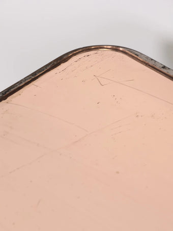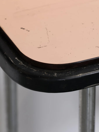 ヴィンテージならではのモダンで美しいシルエットで、天板には鏡のように反射するカラーガラスが付いています。