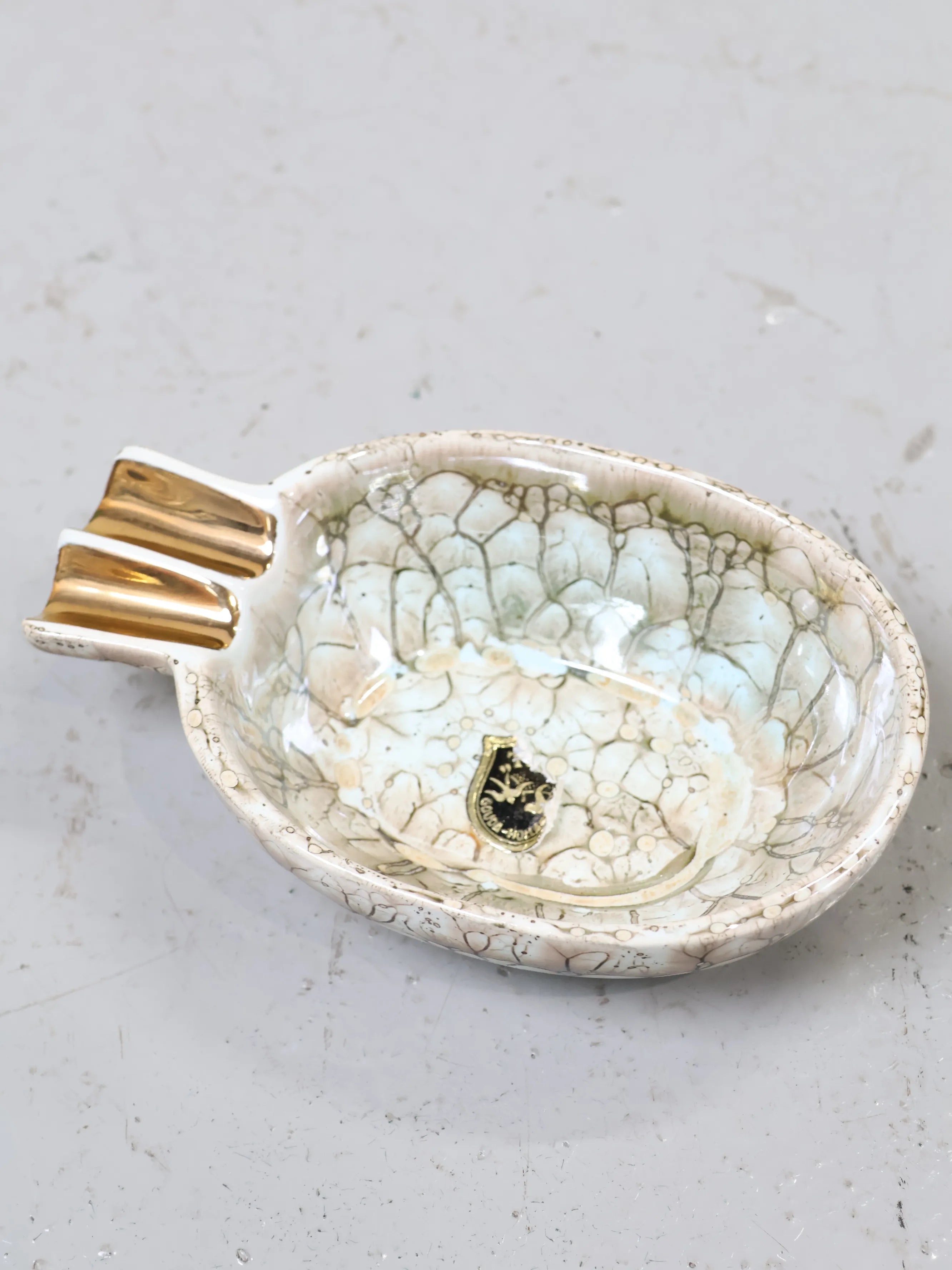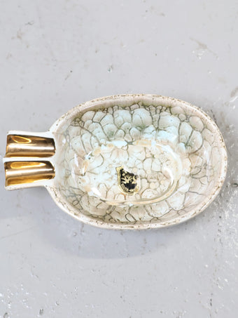 1960-70年代 ヴィンテージ アイボリーセラミック アッシュトレイ 灰皿 マーブル クラックル釉 レトロ