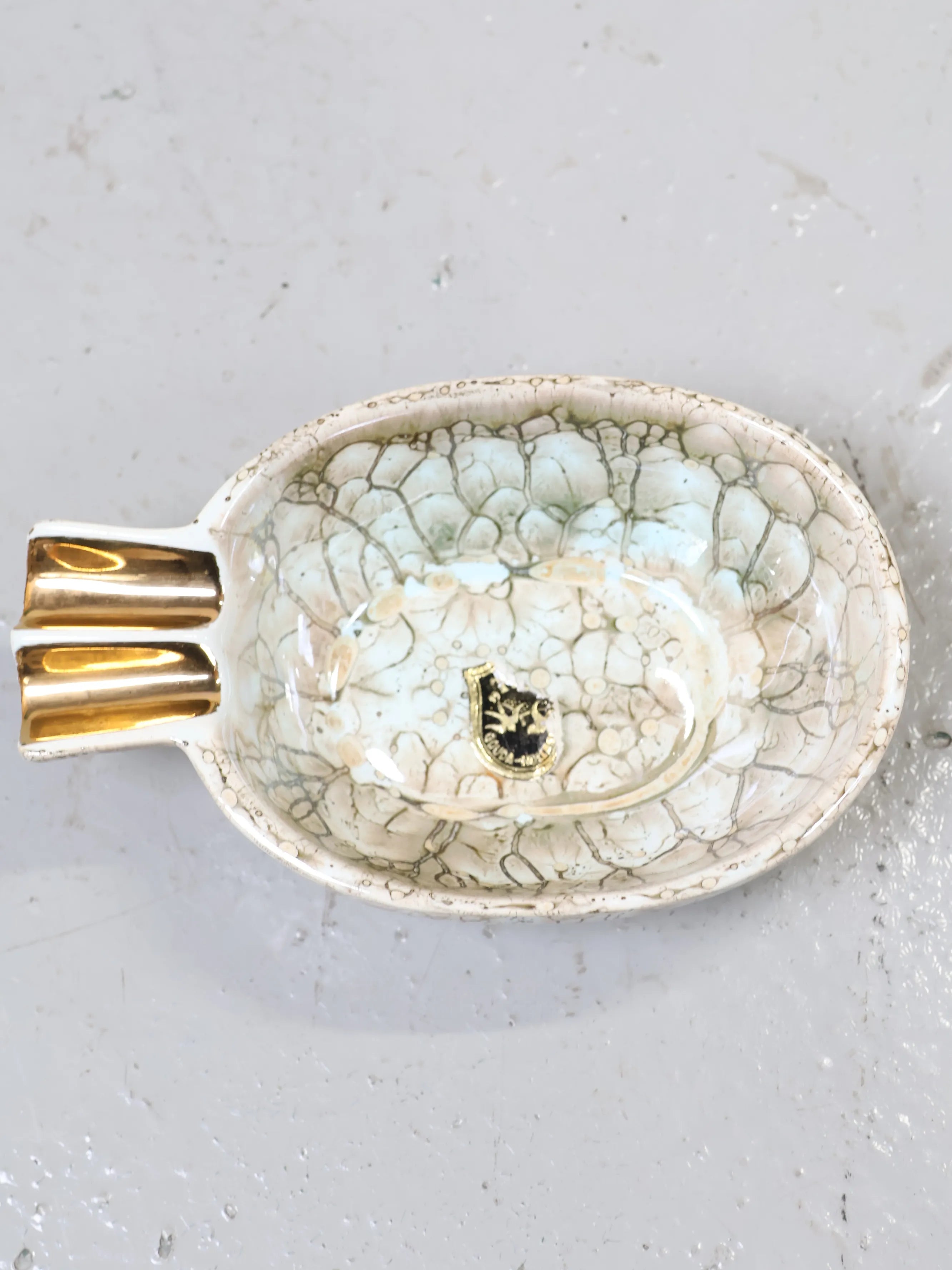 • 品名:ヴィンテージ アイボリーセラミック アッシュトレイ 灰皿 マーブル クラックル釉 レトロ