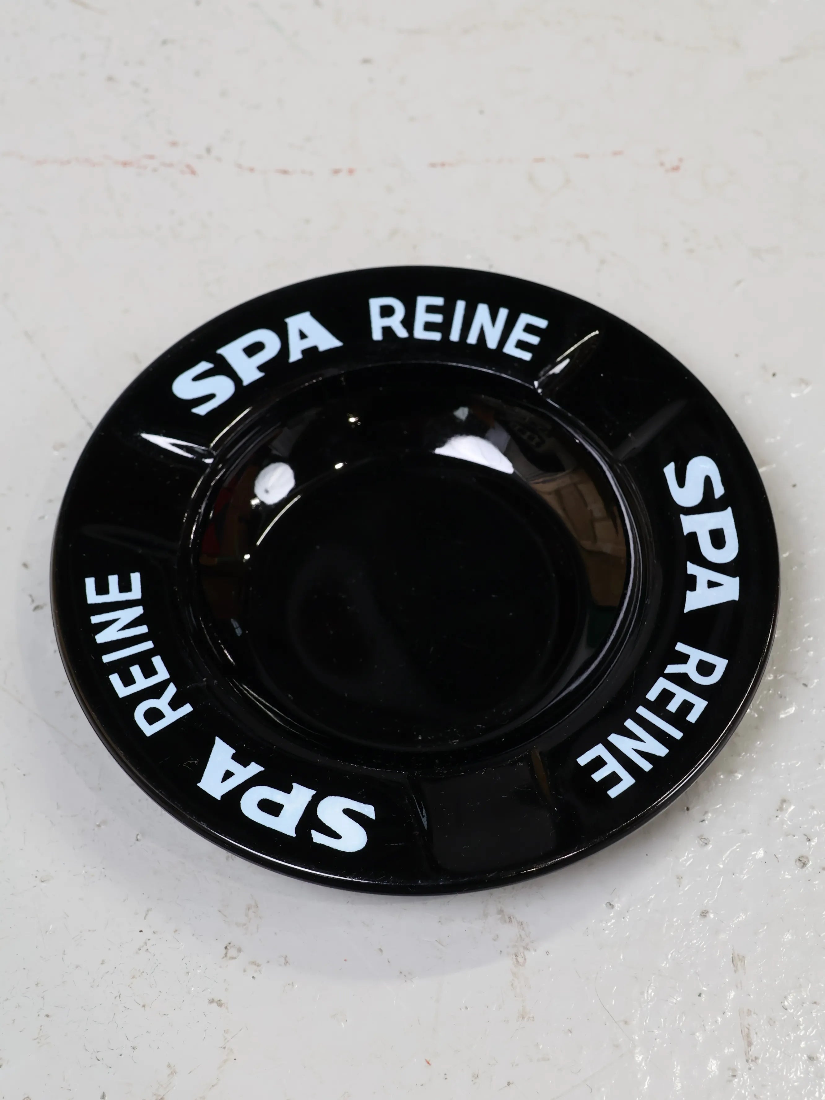 「SPA REINE」のロゴは、ヨーロッパのミネラルウォーターブランドとして知られ、当時の広告用ノベルティとして製造された背景も感じられるアイテム。